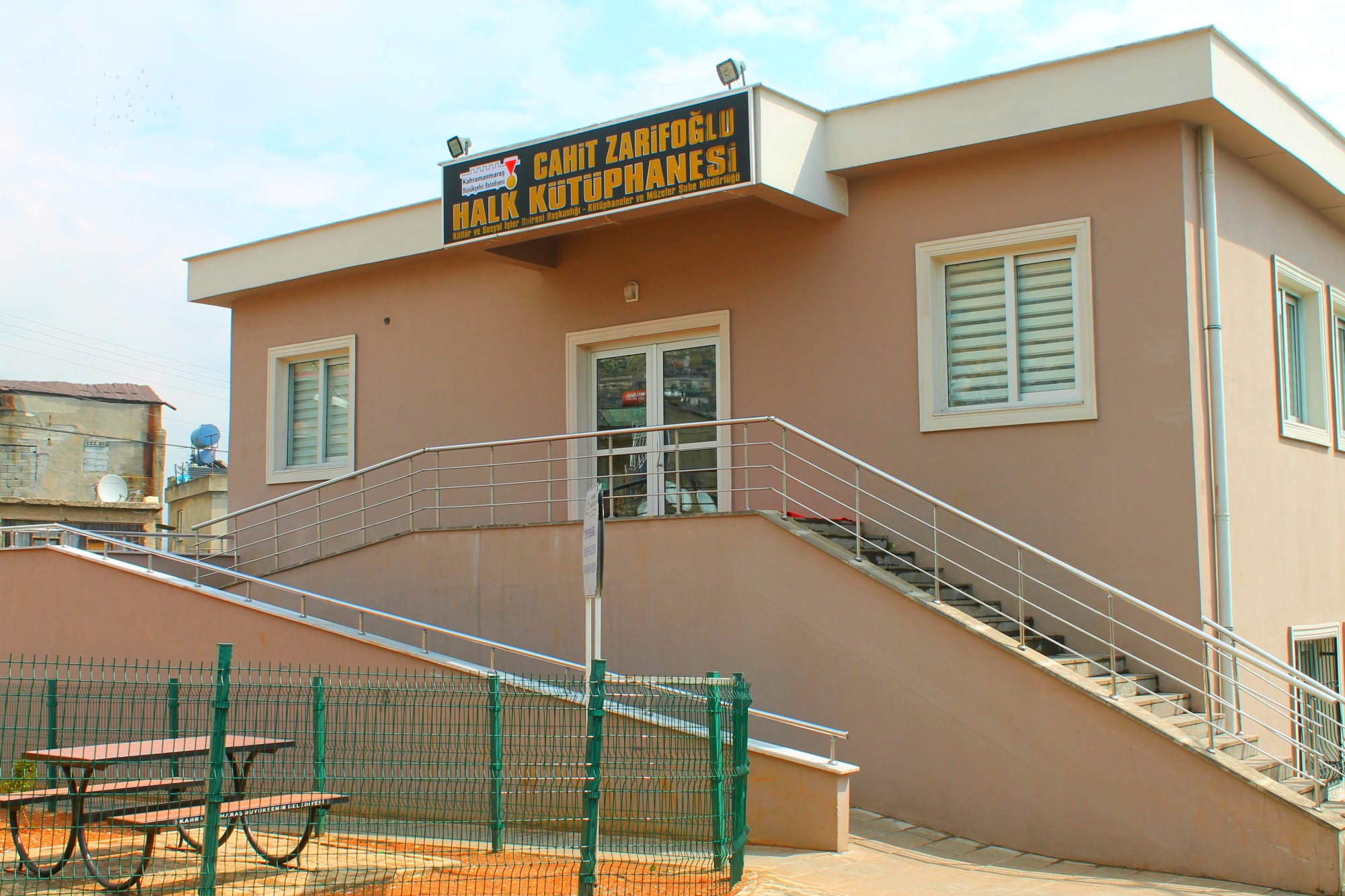 Kahramanmaraş Büyükşehir Belediyesi Fen İşleri Dairesi Başkanlığı Etüt Proje Şube Müdürlüğü Tarafından, Onikişubat İlçesi Serintepe Mahallesinde Bulunan Taziye Evi, Okuma Salonu ve Muhtarlık Olarak 500 m2 lik Bir Arsaya Konumlandırılan ve 365 m2 Oturum Alanına Sahip Olan Bina Toplamda 850 m2 lik Bir Kullanıma Sahiptir.Alt Katta Bay/Bayan Taziye Evi, Islak Hacimler ve Muhtarlık Odası Vardır.Üst Katta İse İnternet Salonu , İdari Kısım,Kütüphane ve Okuma Salonu Mevcuttur.Şuan Hizmet Vermektedir.