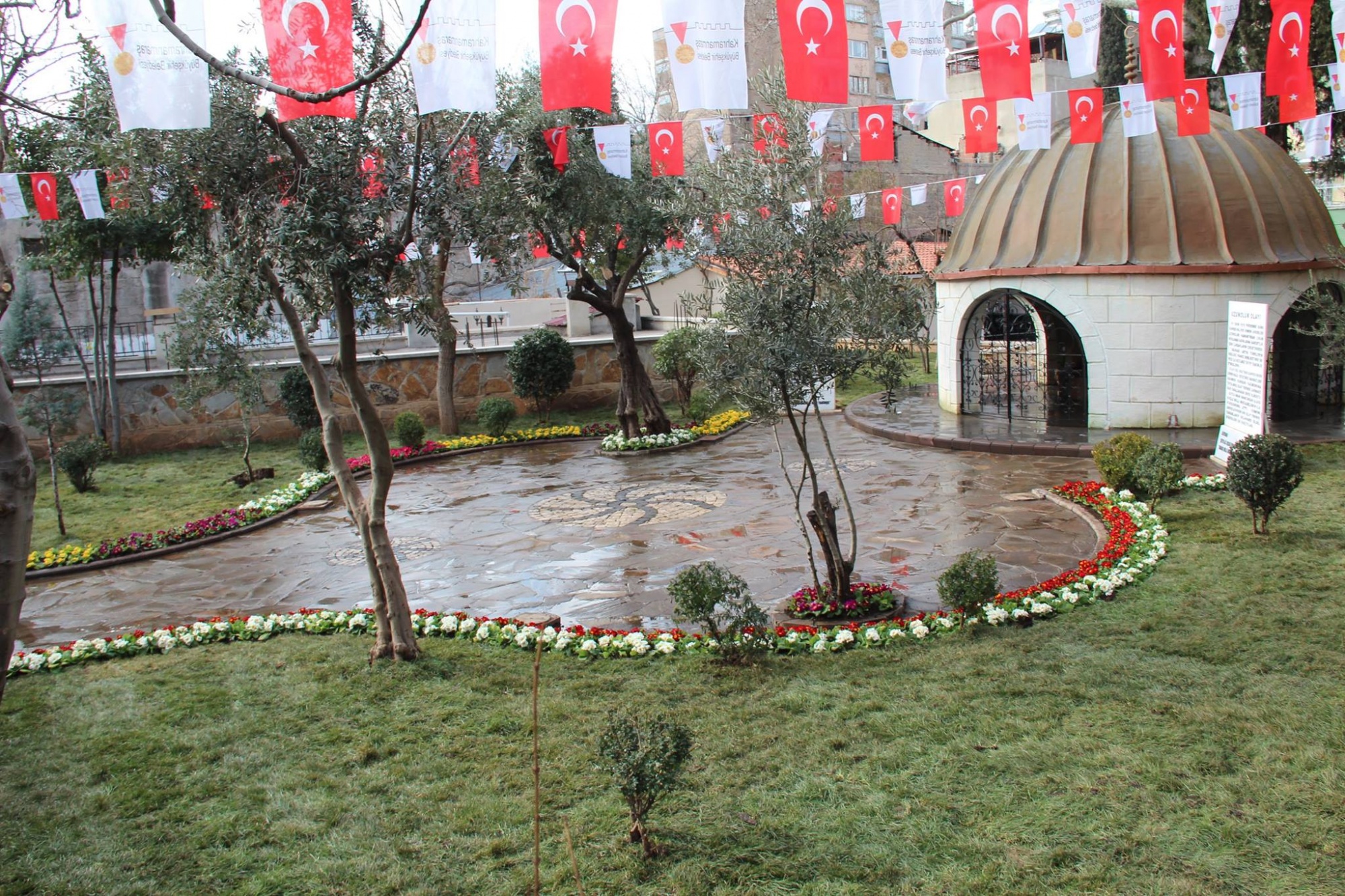 Sütçü imam türbesi bahçesinde çiçeklendirme ve bakım çalışmaları tamamlanmıştır.