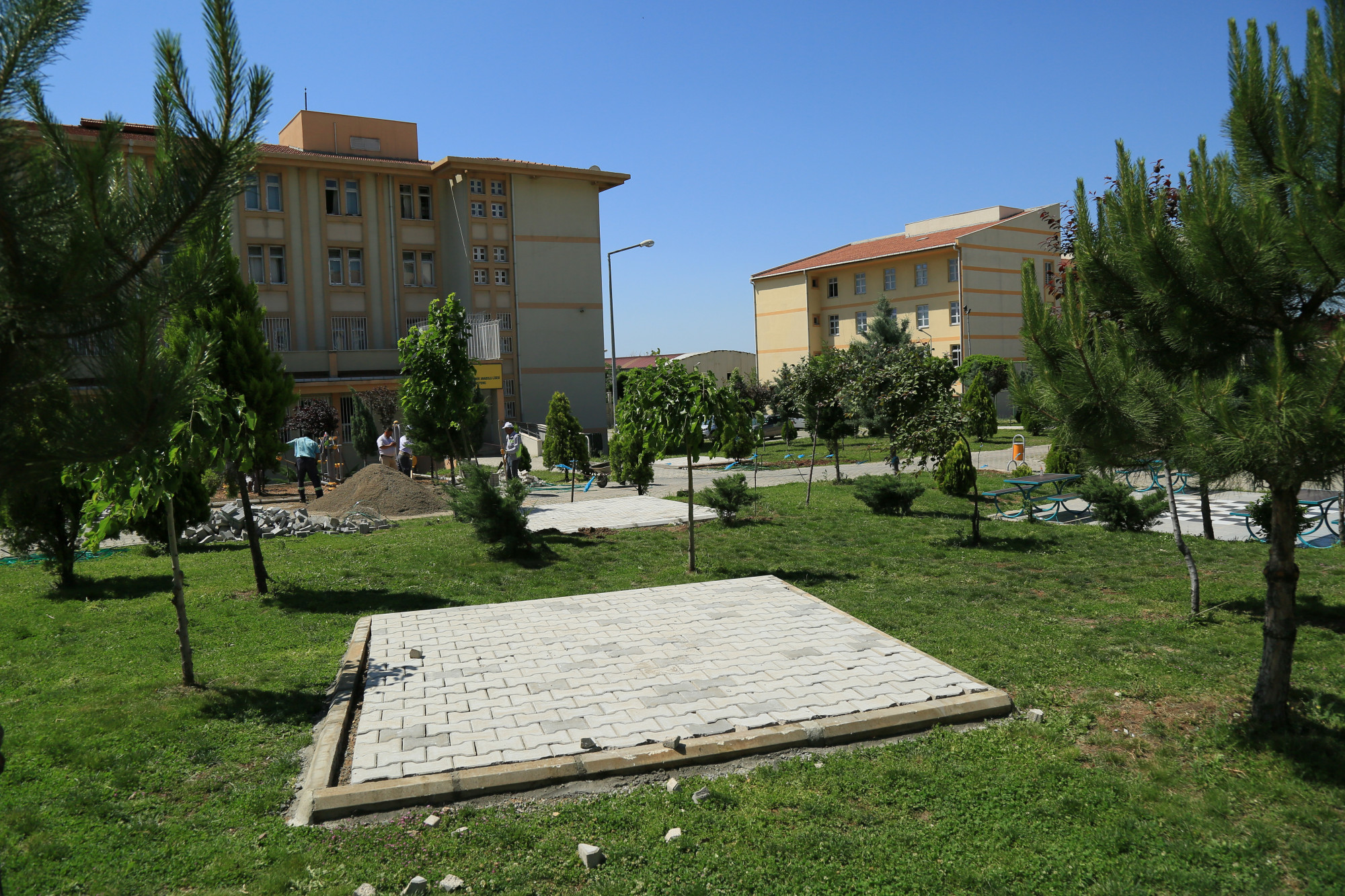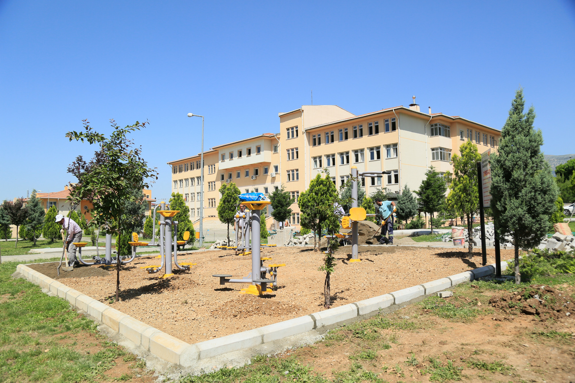 Dulkadiroğlu İlçesi Yavuz Selim Mahallesi sınırları içinde bulunan TOKİ Yıldız Mesleki ve Teknik Anadolu Lisesi çevre düzenleme çalışması kapsamında; Kondisyon aletleri kurulumu, bordür çekme, kent mobilyaları montajı ve parke döşeme çalışmaları yapılmıştır