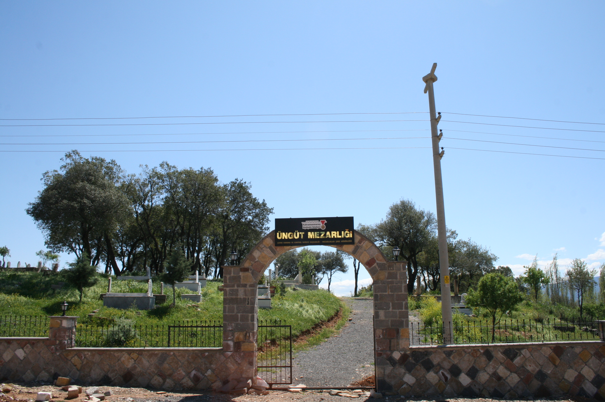 Kahramanmaraş Büyükşehir Belediyesi tarafından,Kahramanmaraş ili Onikişubat ilçesi Üngütmahallesi mezarlık alanı çevresine 125 m uzunluğunda çaplanmiş moloz taş duvarı yapım işidir.Taş duvar üzeri aydınlatma elemanları ve ferforje imalatlar ie dekore edilmiş olup yapımı tamamlanmıştır.