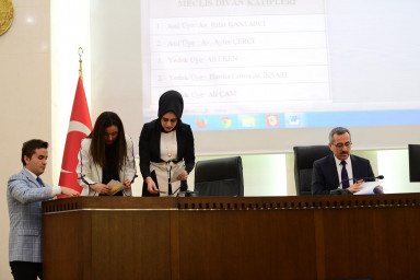 Büyükşehir Belediye Meclis Toplantı Salonu’nda gerçekleştirilen ilk meclis toplantısı divan katibi üyeliklerine üye seçimi ile başladı.
