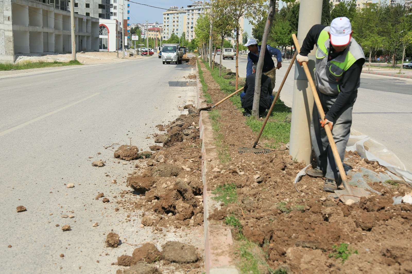 Kahramanmaraş Büyükşehir Belediyesi Park ve Bahçeler Daire Başkanlığı ekiplerince yürütülen çalışmalarda bir taraftan ağaç budama, bir taraftan toprak tesviyesi bir taraftan çiçek dikimi ve bir taraftan da çim serimi devam ediyor.