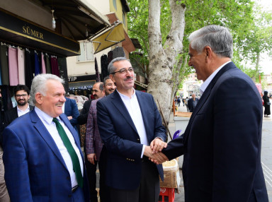 Saraçhane Çarşısı’ndaki esnafları da ziyaret eden Başkan Güngör ve meclis üyeleri, esnaflarla çay içerek sohbet ettiler.
