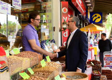 Kahramanmaraş Büyükşehir Belediye Başkanı Hayrettin Güngör, esnafları ziyaret ederek, vatandaşlarla sohbet etti.
