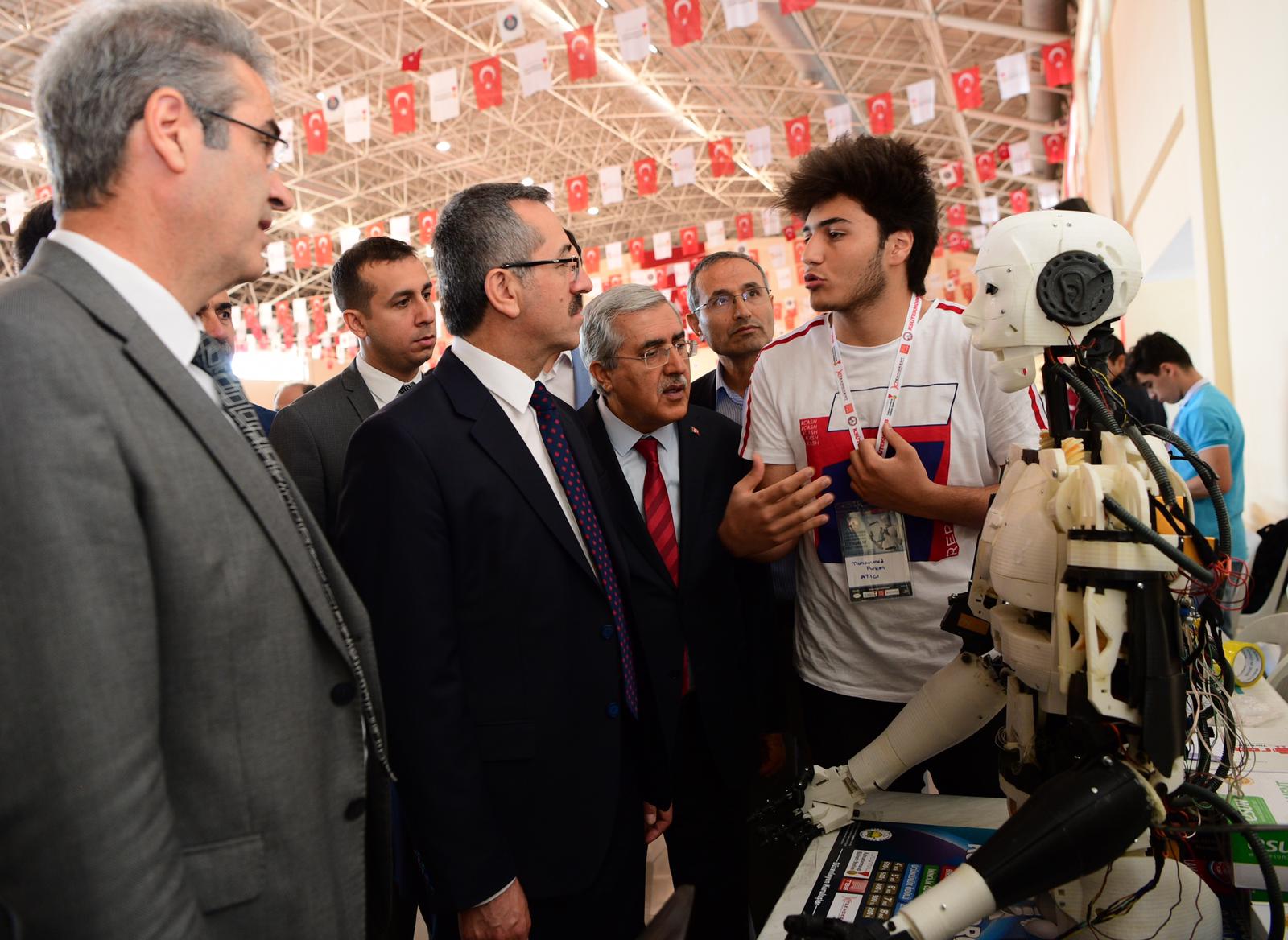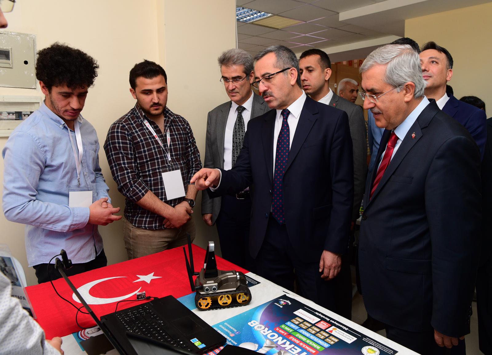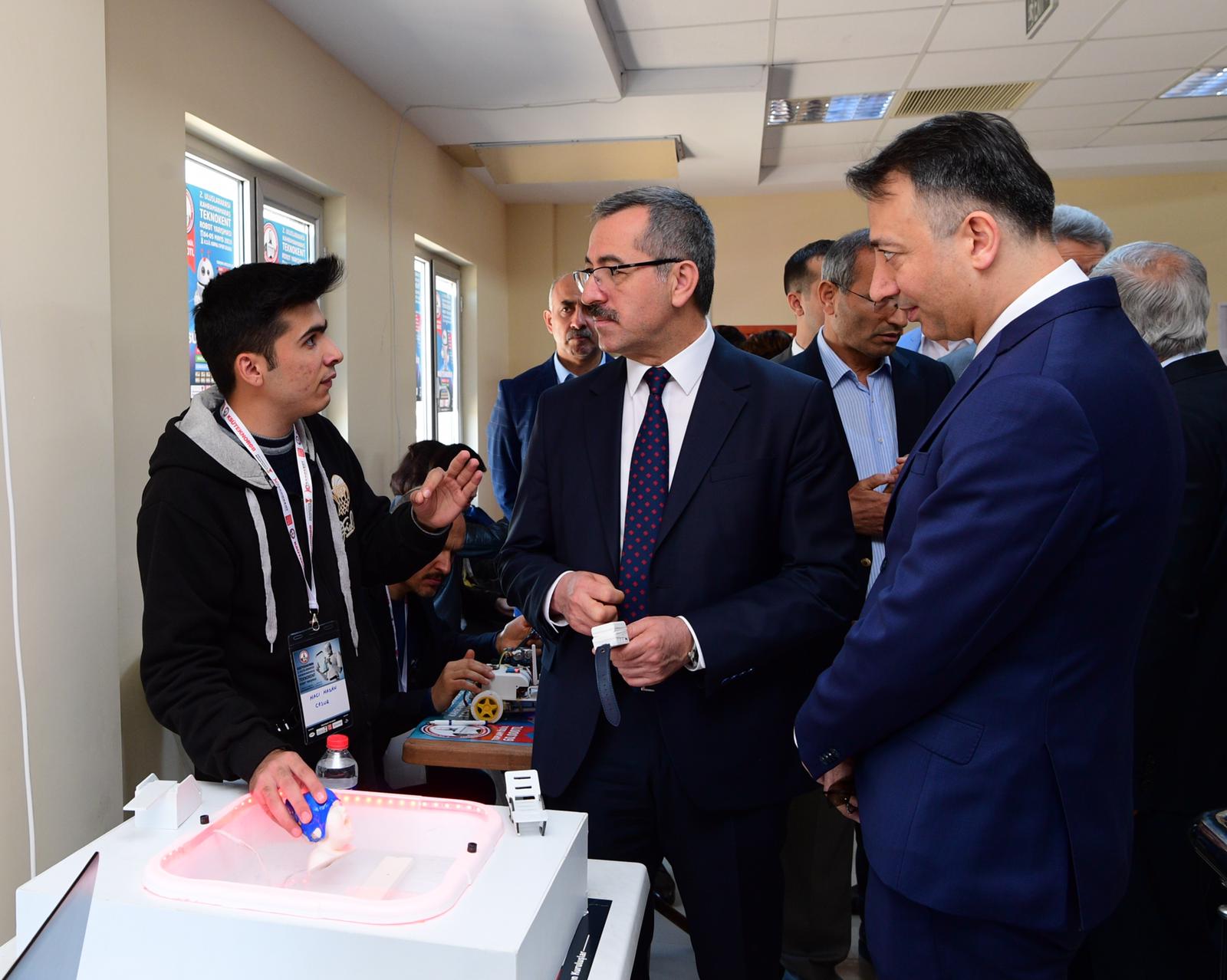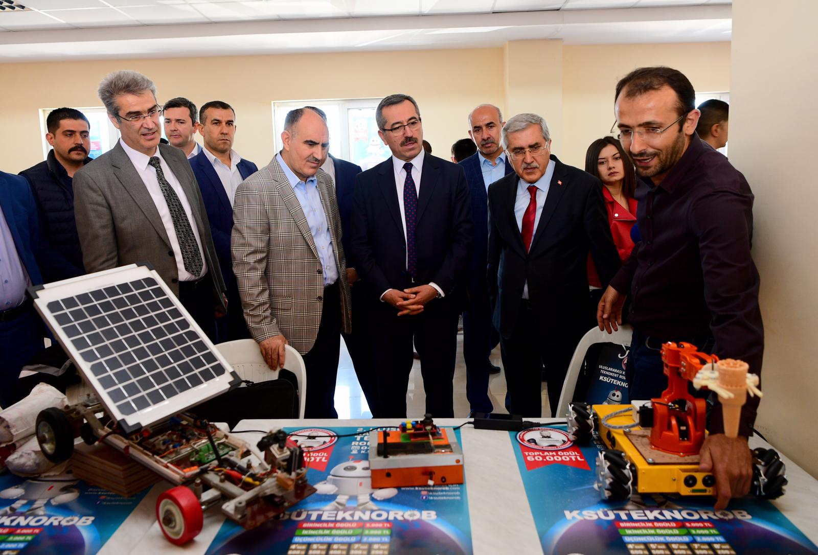 Bu arada Kahramanmaraş Valisi Vahdettin Özkan, AK Parti Kahramanmaraş Milletvekili İmran Kılıç, Kahramanmaraş Büyükşehir Belediye Başkanı Hayrettin Güngör, KSÜ Rektörü Prof. Dr. Niyazi Can, Kahramanmaraş Teknokent Genel Müdürü Prof. Dr. Mahit Güneş ve diğer protokol mensupları açılan stantları tek tek gezerek yarışmacılarla sohbet edip robotlar hakkında bilgiler aldılar.