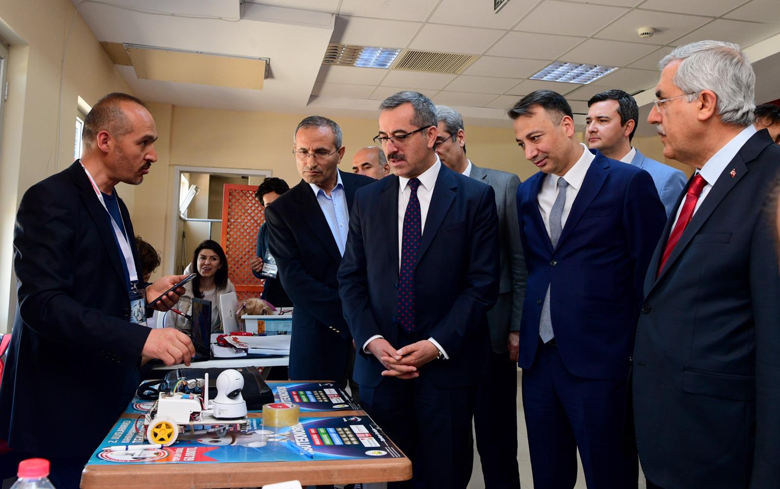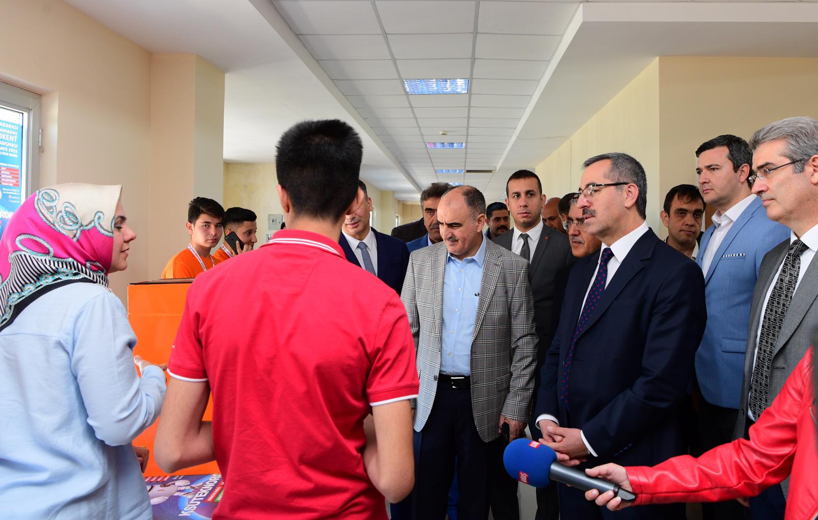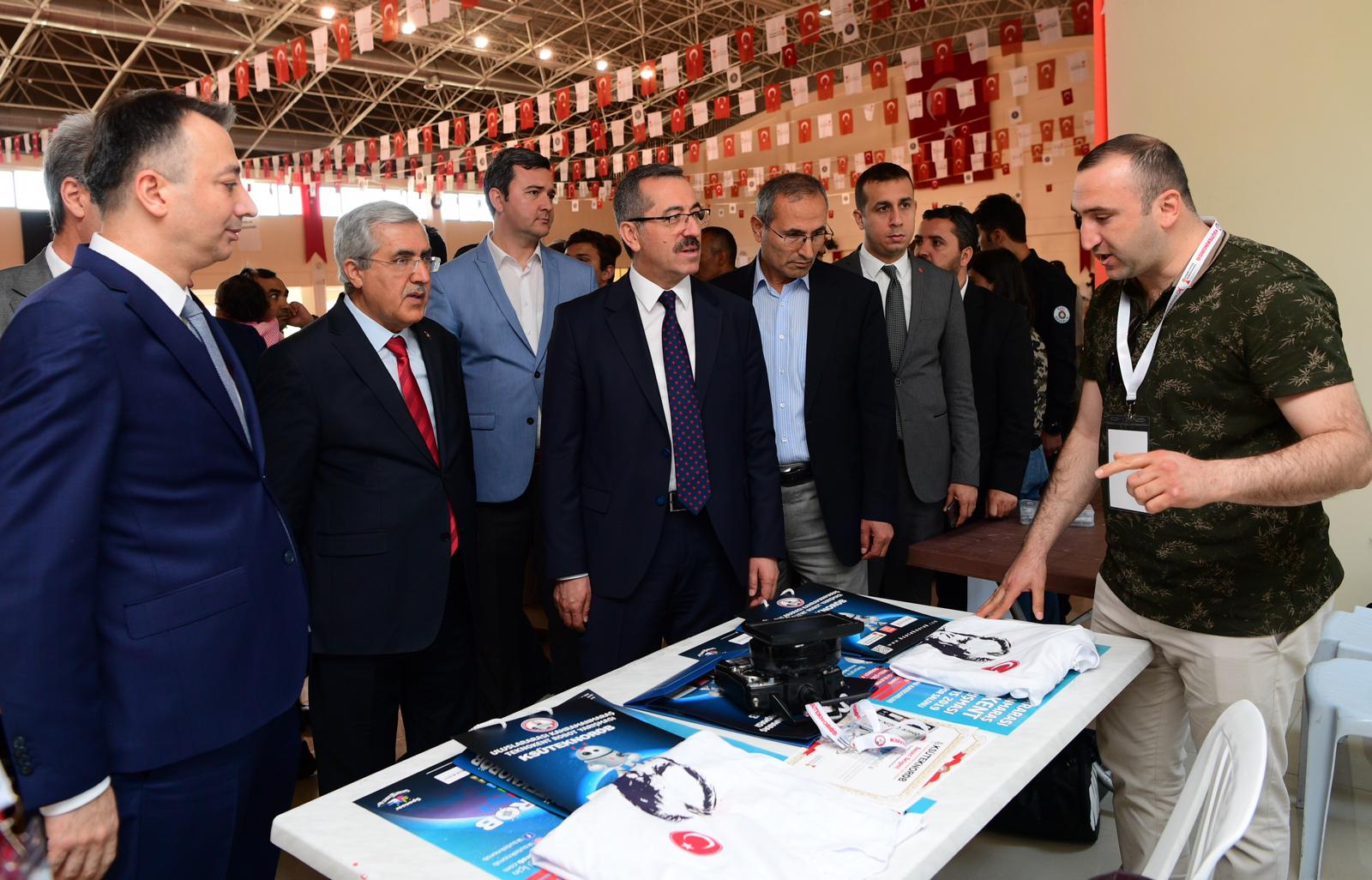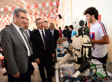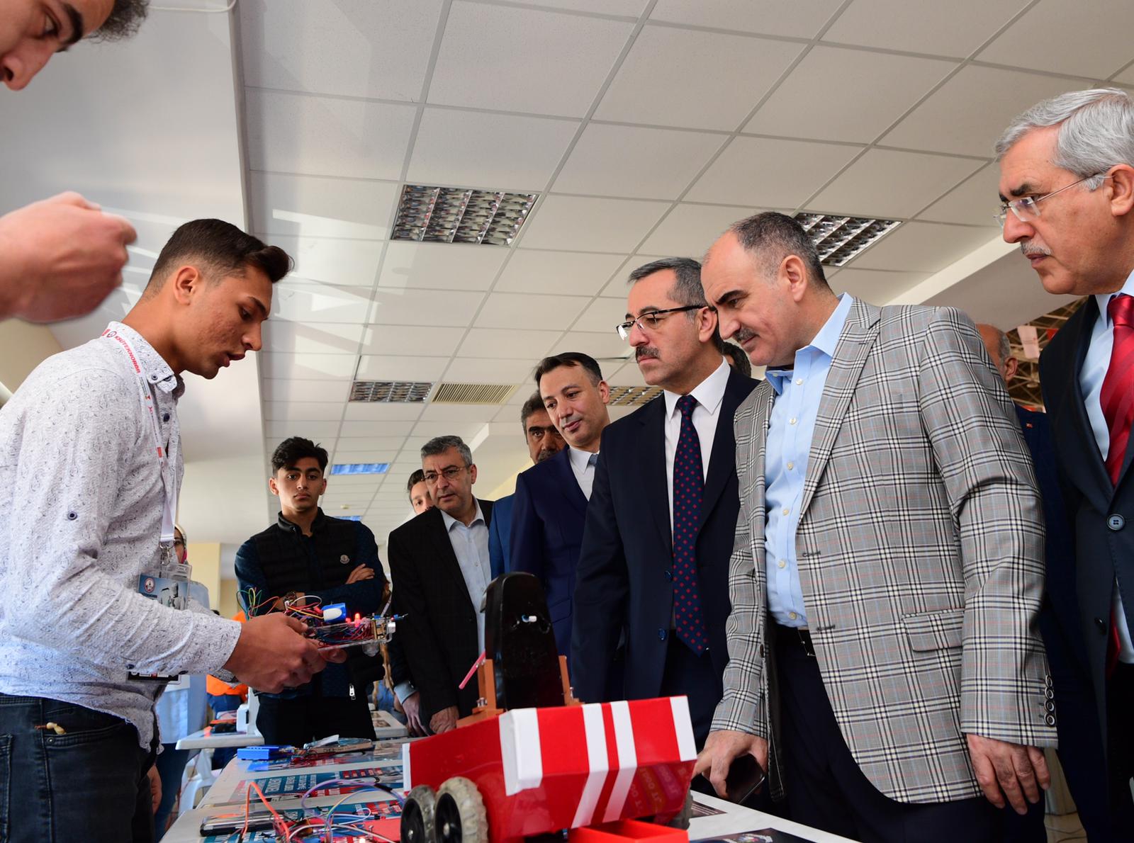 Bu arada Kahramanmaraş Valisi Vahdettin Özkan, AK Parti Kahramanmaraş Milletvekili İmran Kılıç, Kahramanmaraş Büyükşehir Belediye Başkanı Hayrettin Güngör, KSÜ Rektörü Prof. Dr. Niyazi Can, Kahramanmaraş Teknokent Genel Müdürü Prof. Dr. Mahit Güneş ve diğer protokol mensupları açılan stantları tek tek gezerek yarışmacılarla sohbet edip robotlar hakkında bilgiler aldılar.