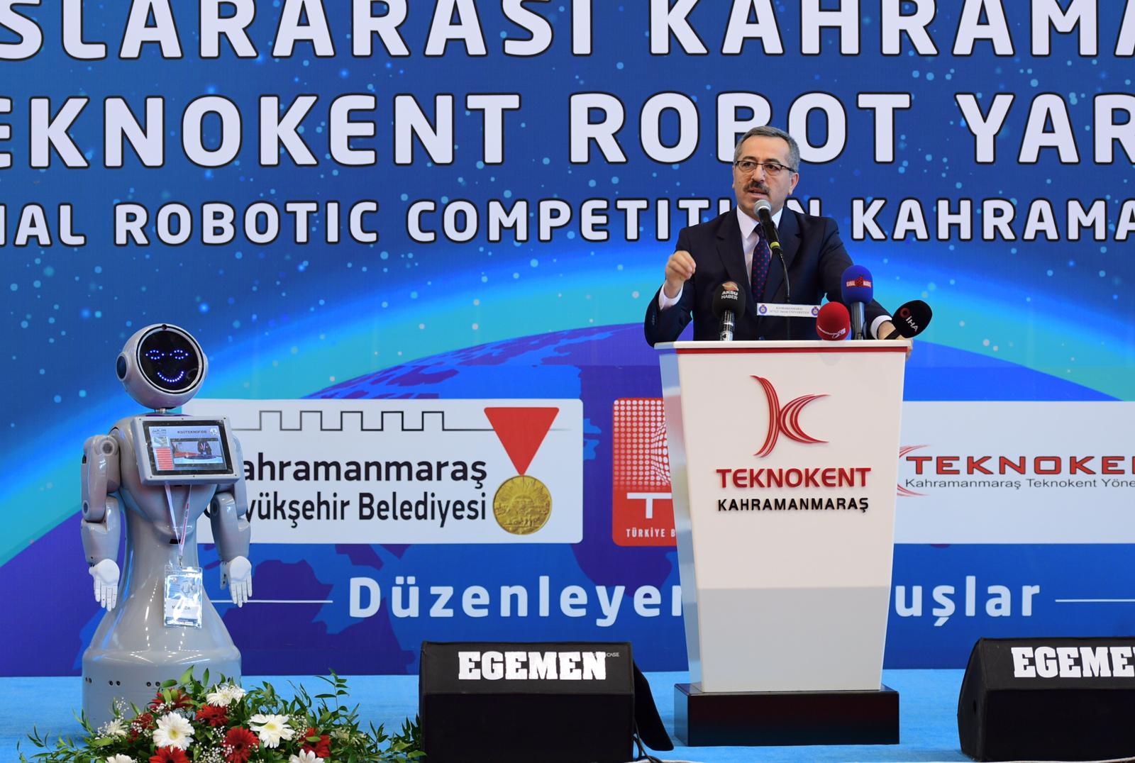 İşte bu tip organizasyonlar ve yarışmalar her ülkenin kendi yerli yazılımını kendi bilişim teknolojilerini geliştirme fırsatı da ortaya koyuyor, gençlerimizi bu manada yönlendiriyor. Üniversitelerimizi, fakültelerimizin, kurum ve kuruluşlarımızın kapasitelerini geliştiriyor. Bu manada Kahramanmaraş şehrimizde ikincisi yapılan bu robot yarışmasının ülkemizin bu manadaki gelişmelerine çok büyük katkı sağlayacağını düşünüyor tekrar emeği geçenlere teşekkür ediyorum” diye konuştu.