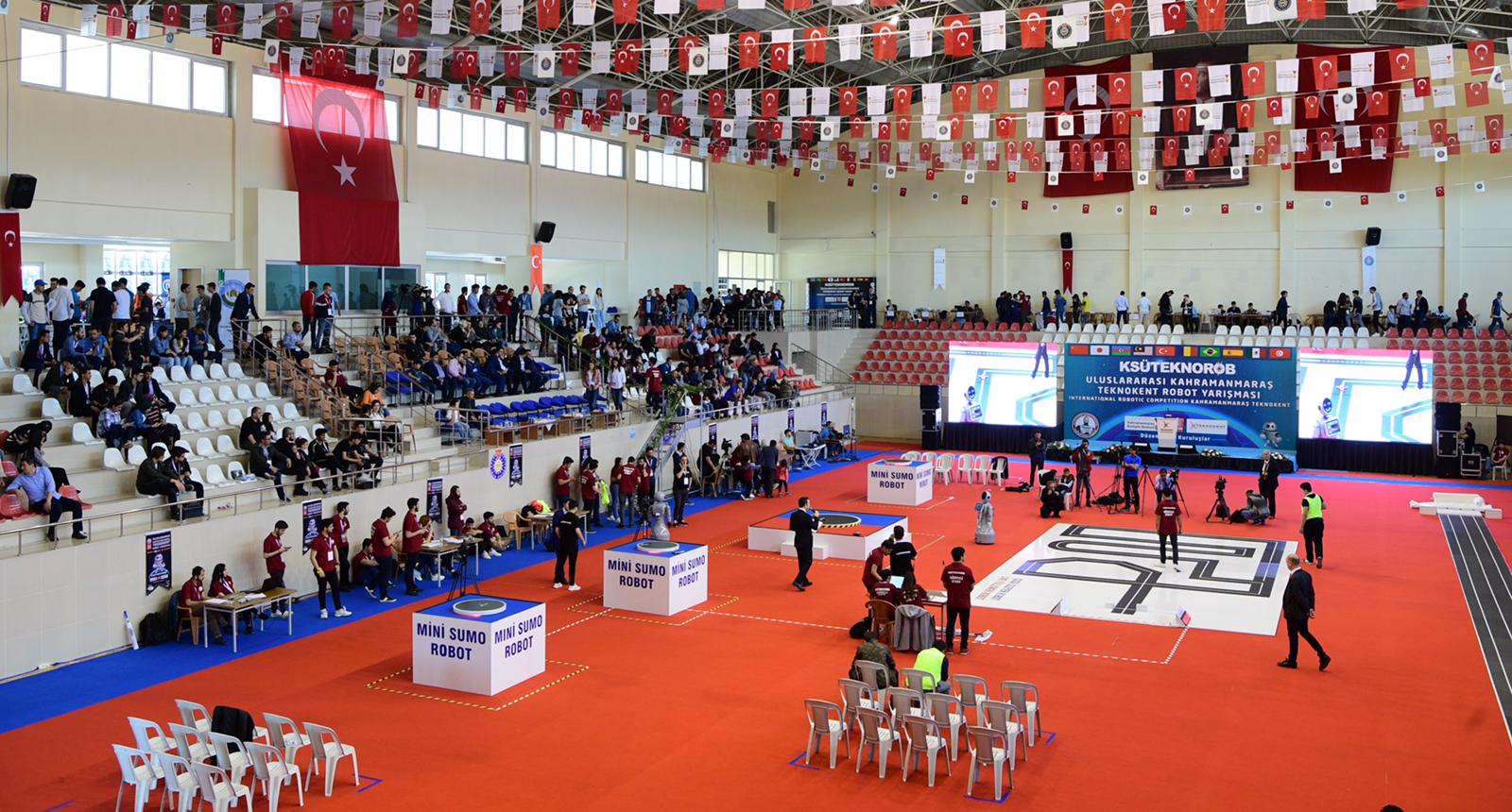 Kahramanmaraş Sütçü İmam Üniversitesi Spor Salonu’nda başlayan robot yarışmalarına 8 ülkeden 600’ün üzerinde yarışmacı katılıyor.
