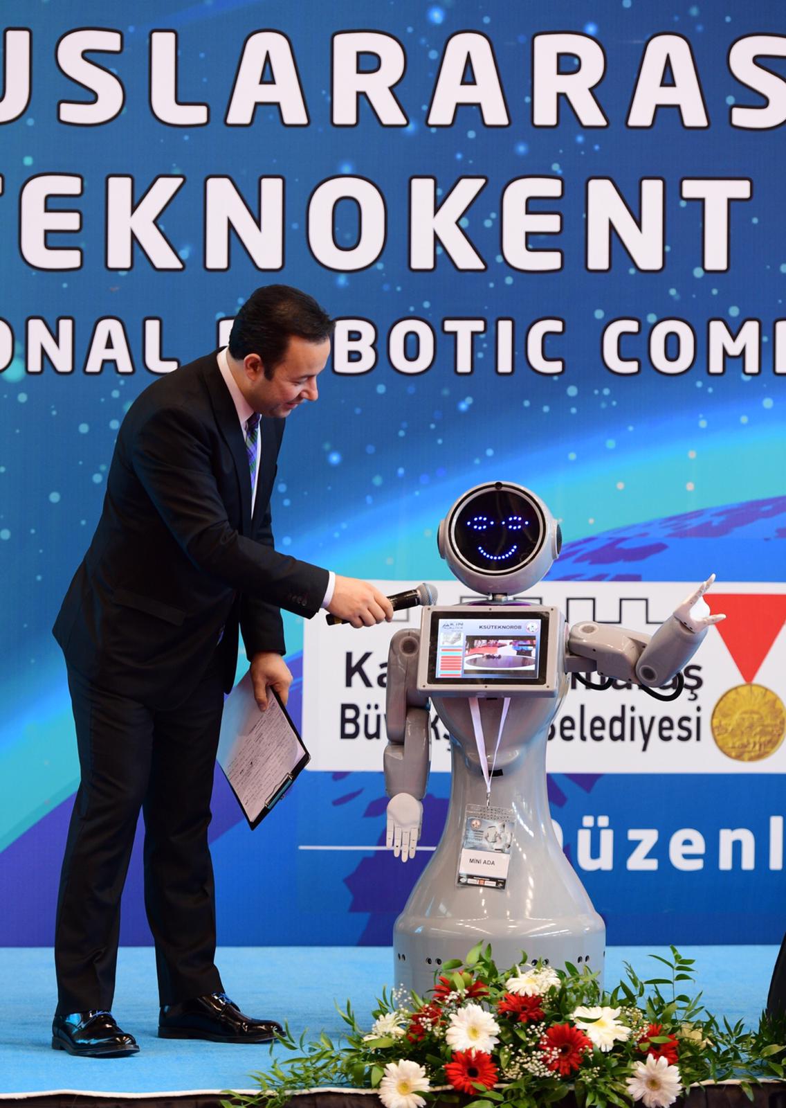 Açılış konuşmalarında ilk olarak tamamen yerli ve Milli olarak üretilen Mini Ada isimli robot bir kısa bir konuşma yaparak misafirlere hoş geldiniz dedi yarışmacılara da başarılar diledi.