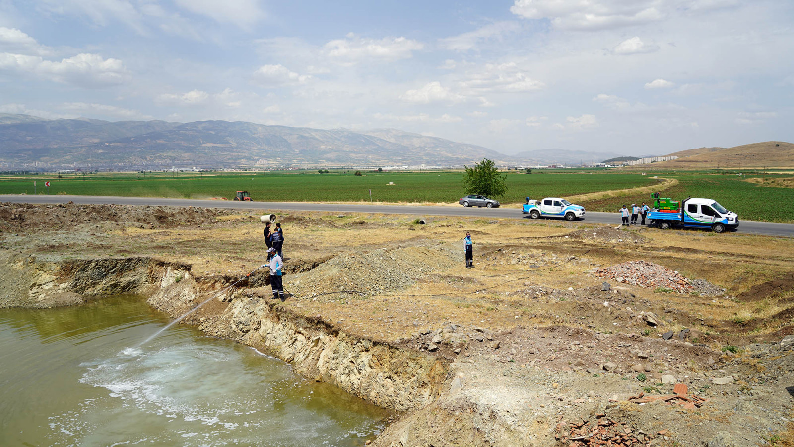Kahramanmaraş Büyükşehir Belediyesi uçkun mücadelesi kapsamında sivrisinek ve karasineklerin üreme alanlarında larva mücadelesine devam ediyor.