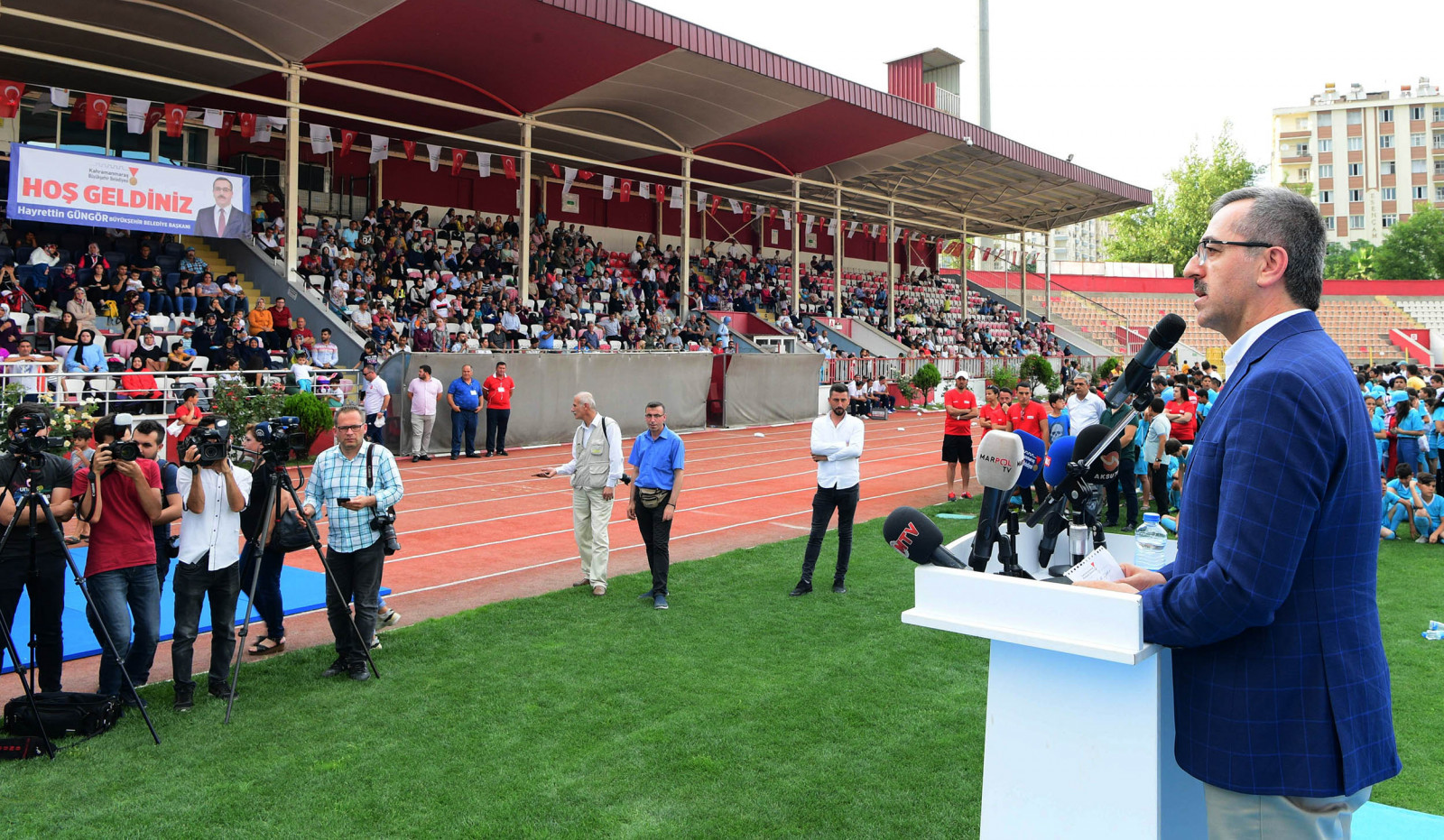 Yaz Spor Okullarının amacına ilişkin bilgiler de aktaran Başkan Güngör: “Biz buralarda belki profesyonel sporcu yetiştirmiyoruz ama gençliğin tehdit unsurlarından birisi bilişim bağımlılığı ve bir diğeri de madde bağımlılığıdır.  Biz bu tip mekanları oluşturarak, sayılarını çoğaltarak gençlerimizin bu zararlı ve tehlikeli unsurlardan uzak kalmasını sağlayabiliriz” diye konuşarak Yaz Spor Okullarına katılan tüm sporculara, teknik heyete ve diğer emeği geçenlere teşekkür etti.