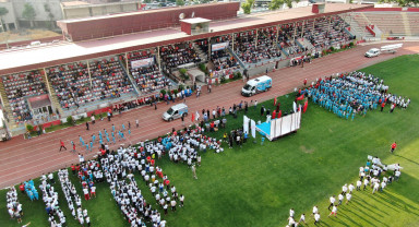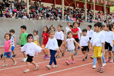 Kahramanmaraş Büyükşehir Belediyesi Mehteran Takımı’nın marşları eşliğinde Yaz Spor Okullarına katılan sporcular dallarına göre geçiş yaptılar.