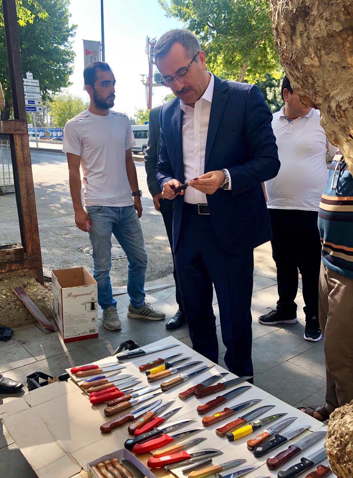 Sosyal medya hesabından paylaşımda bulunan Güngör, “Güne Orman Dairesindeki esnaflarımızla sohbet ederek başladık. Kurban Bayramı öncesinde Kahramanmaraş bıçakları tezgahlarda yerini almış. Tüm esnafımızın işleri hayırlı ve bereketli olsun” ifadelerini kullandı.
