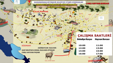 Kahramanmaraş Büyükşehir Belediyesi Ulaşım Hizmetleri Dairesi Başkanlığı’ndan yapılan açıklamada 6 Ağustos Salı günü Canlı Hayvan Borsası’na başlayan seferlerin 10 Ağustos Cumartesi Arife gününe kadar devam edeceği belirtildi. Aracın Kahramanmaraş Büyükşehir Belediyesi durağından hareket ederek Madalyalı Kavşak’tan Otogar istikametine ve direkt Canlı Hayvan Borsası’na geçeceği ifade edildi. Belediye durağından kalkış saatleri; 10.00, 12.00, 14.00, 16.00 iken Canlı Hayvan Borsasından kalkış saatleri ise 11.00, 13.00, 15.00,17.00.