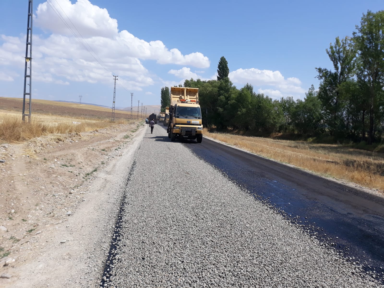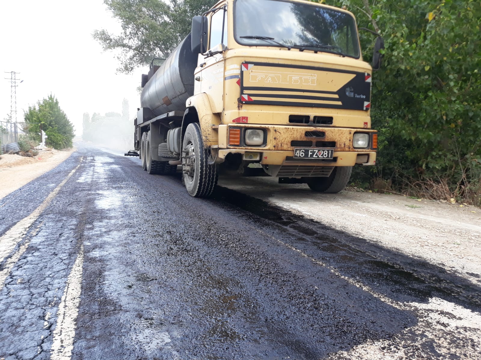 Kahramanmaraş Büyükşehir Belediyesi yol yapım ve onarım çalışmaları kapsamında Elbistan İlçesi Gündere Mahallesinde sathi kaplama çalışmalarına başladı.