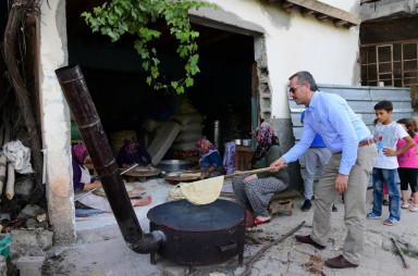Çağlayancerit programına Helete Mahallesi ziyaretiyle devam eden Başkan Güngör, Karaçay Parkı’nda bölge sakinleriyle bir araya geldi. Ardından Erinci Mahallesi’ne geçen heyete vatandaşlar tarafından Kahramanmaraş’ın meşhur ‘Kabarcık Üzümü’ ikram edildi. Misafirperverliklerinden dolayı Erincililere teşekkür eden Başkan Güngör, mahsullerinin bereketli olmasını temenni etti. Büyükşehir Belediye Başkanı Hayrettin Güngör günün sonunda Dulkadiroğlu İlçesi’ne bağlı Beşenli Mahallesi’ne uğradı. Burada geleneksel yufka ekmeği yapan kadınlarla sohbet eden Güngör, kolaylık diledi. Başkan Güngör Beşenli Mahallesi’nde çocuklarla da yakından ilgilendi.