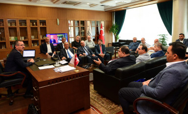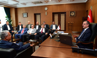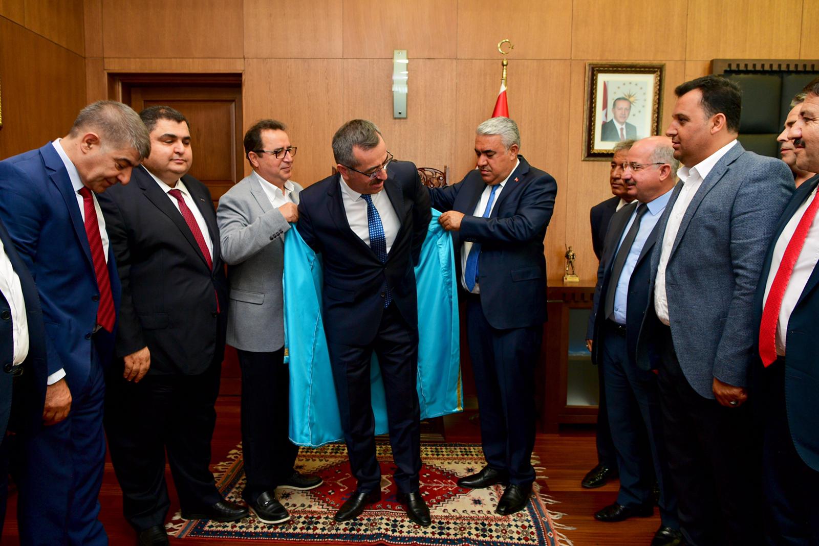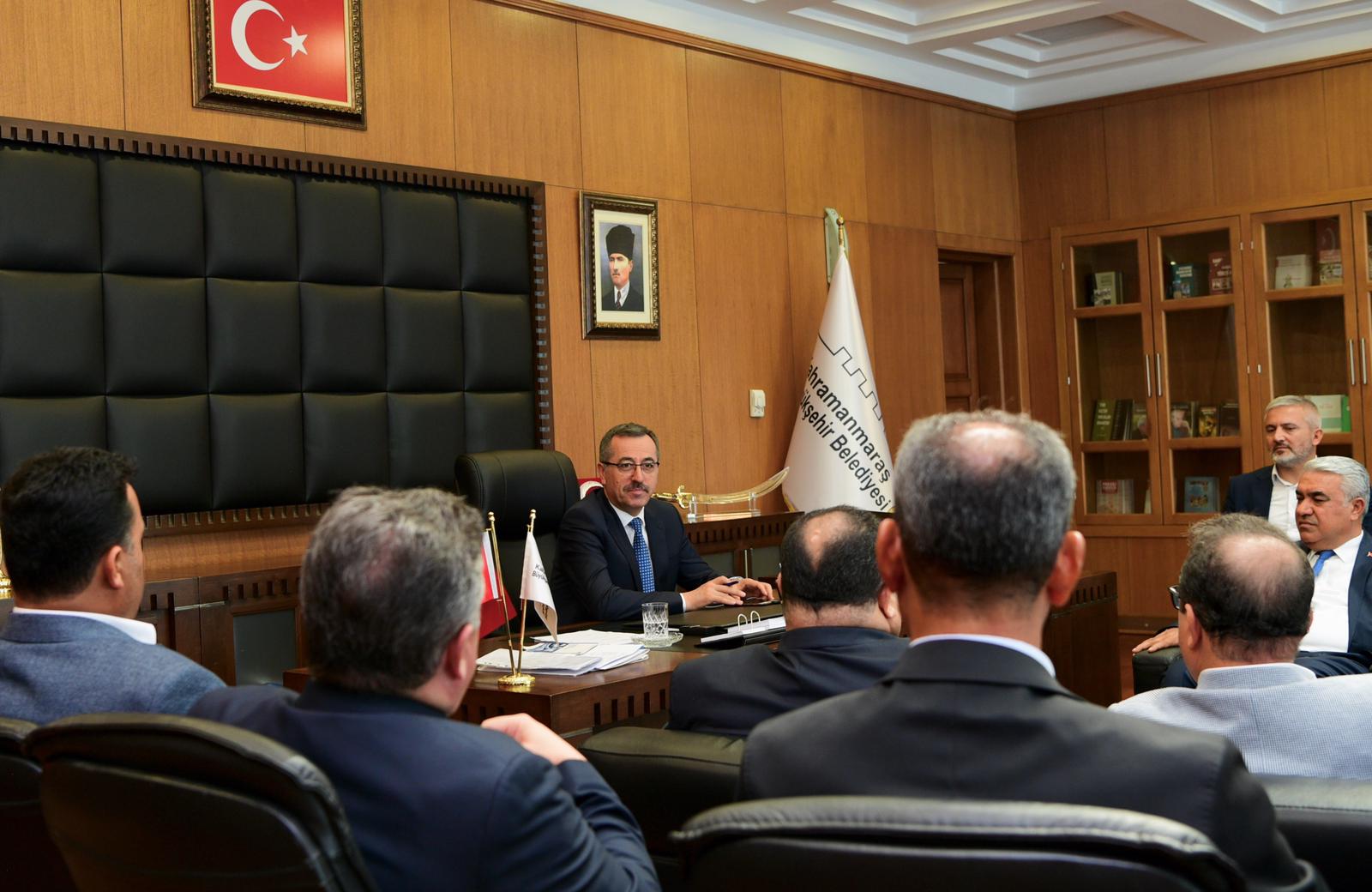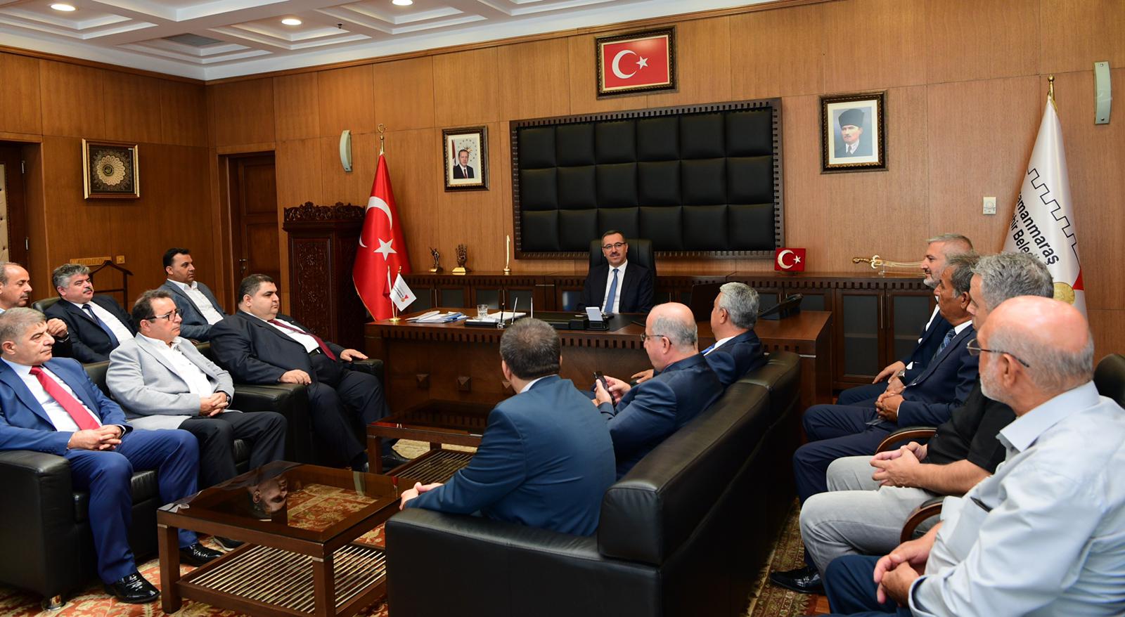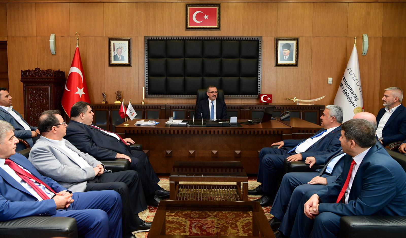 Kahramanmaraş Büyükşehir Belediye Başkanı Hayrettin Güngör, 16-22 Eylül Ahilik Haftası kapsamında şehir genelinde ziyaretlerini sürdüren Kahramanmaraş Esnaf ve Sanatkarlar Odaları Birliği Başkanı Ahmet Kuybu, KMESOB Yönetim Kurulu Üyeleri ve oda başkanlarını misafir etti.