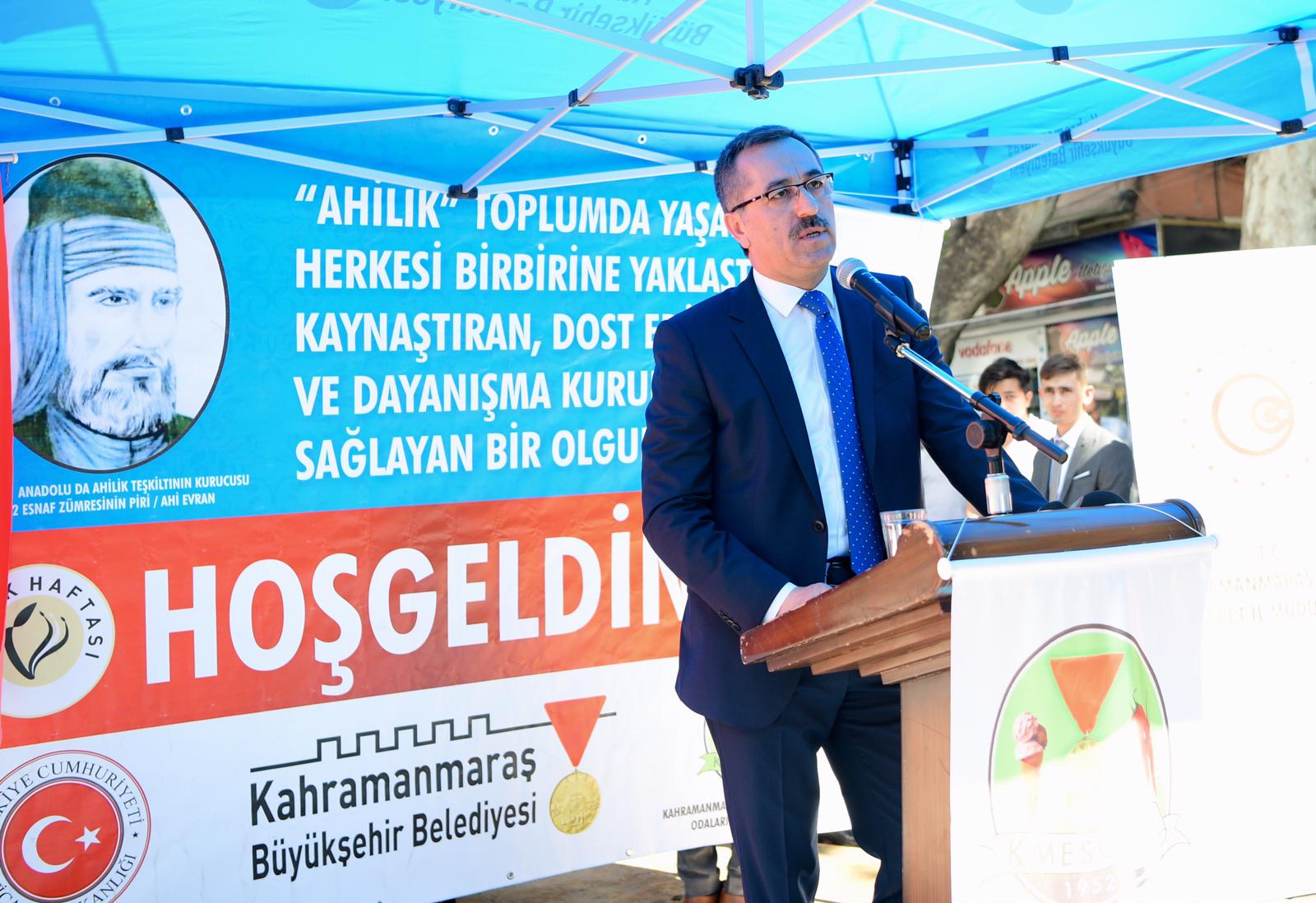 Kahramanmaraş Büyükşehir Belediye Başkanı Hayrettin Güngör, Esnaf ve Sanatkârlar Odaları Birliği’nin düzenlediği Ahilik Haftası Kutlama programına katıldı.Demokrasi Meydanında düzenlenen törene Başkan Güngör’ün yanı sıra Kahramanmaraş Valisi Vahdettin Özkan, TBMM İçişleri Komisyonu Başkanı ve AK Parti Kahramanmaraş Milletvekili Celalettin Güvenç, AK Parti Kahramanmaraş Milletvekili İmran Kılıç, AK Parti Kahramanmaraş Milletvekili Ahmet Özdemir, AK Parti Kahramanmaraş Milletvekili Mehmet Cihat Sezal, Esnaf ve Sanatkârlar Odaları Birliği Başkanı Ahmet Kuybu, STK temsilcileri ile çok sayıda vatandaş katıldı.