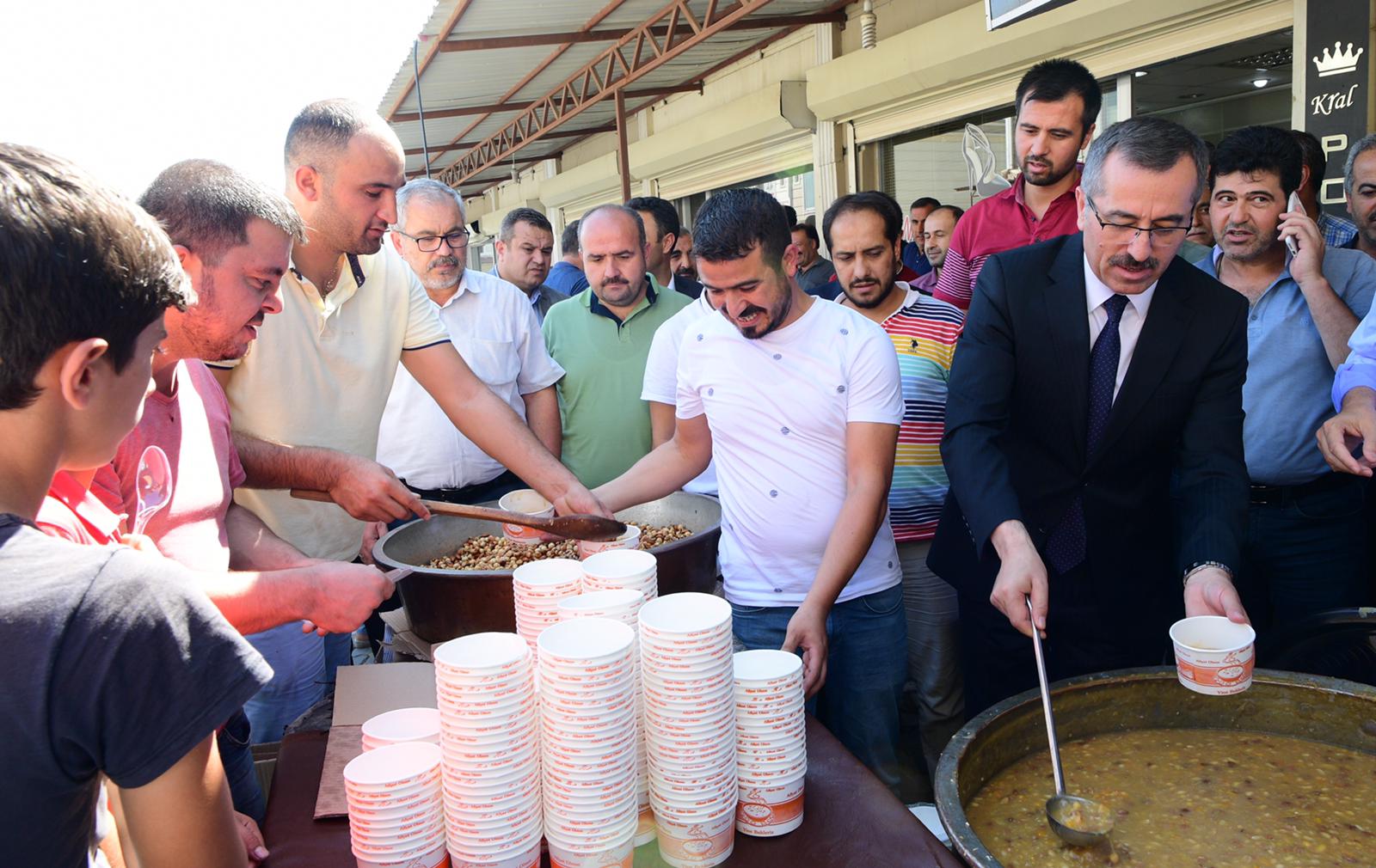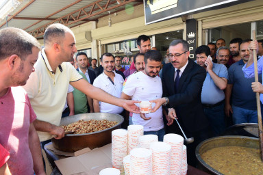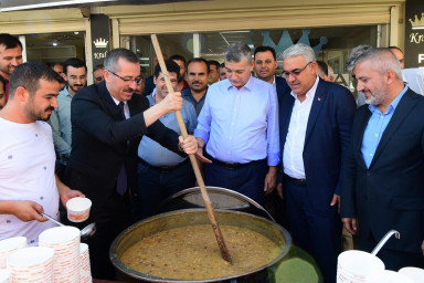 Büyükşehir Belediye Başkanı Hayrettin Güngör, gerçekleştirdiği esnaf ziyaretlerinin ardından Ayakkabıcılar Sitesi’nde esnaflara aşure ikram etti.
