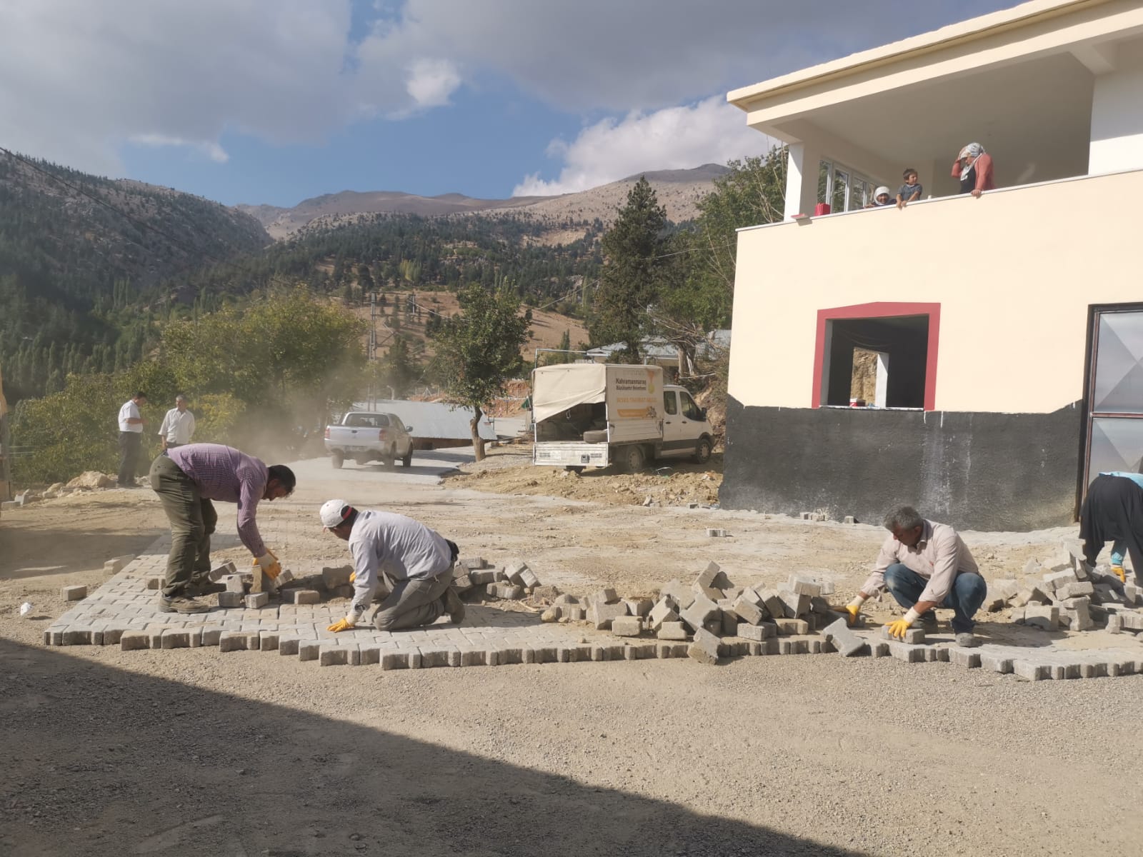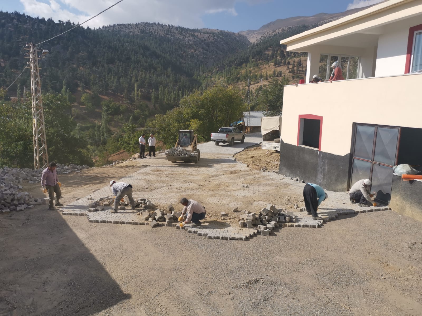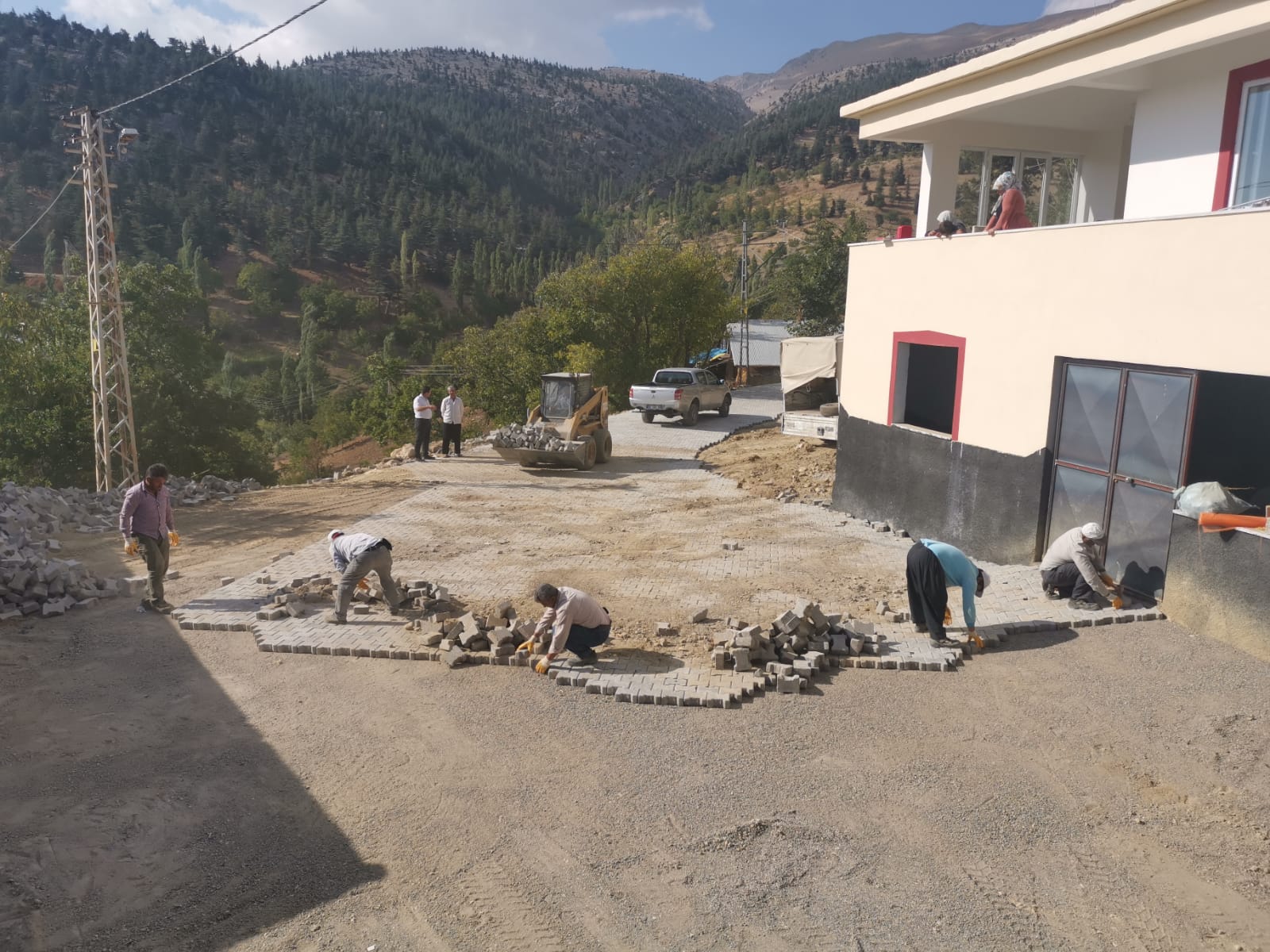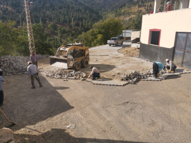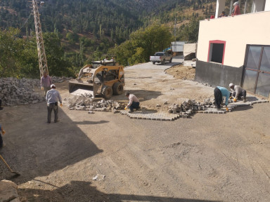 Başkan Hayrettin Güngör’ün Çağlayancerit ziyaretinde müjdesini verdiği çalışmalar başladı: Kale mahallesinin sokaklarına parke döşeniyor.