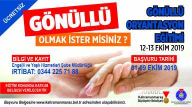 Başvuru için: https://kahramanmaras.bel.tr/engelli-ve-yasli-hizmetleri-gonullu-oryantasyon-egitimi-basvuru-formu
