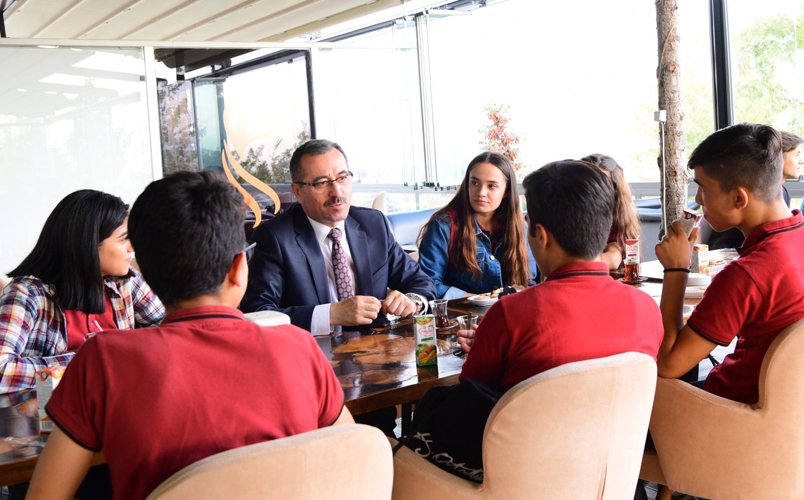 Karşılaştığı öğrencilerle otobüs yolculuğu yapan ardından 15 Temmuz Millet Bahçesi’nde sohbet eden Başkan Güngör, “Gençlerimizin daima yanındayız. 100. yıl etkinliklerimiz kapsamında bu yıl 6.’sını gerçekleştireceğimiz Kitap ve Kültür Fuarımıza tüm gençlerimizi, hemşerilerimizi davet ediyorum” dedi.