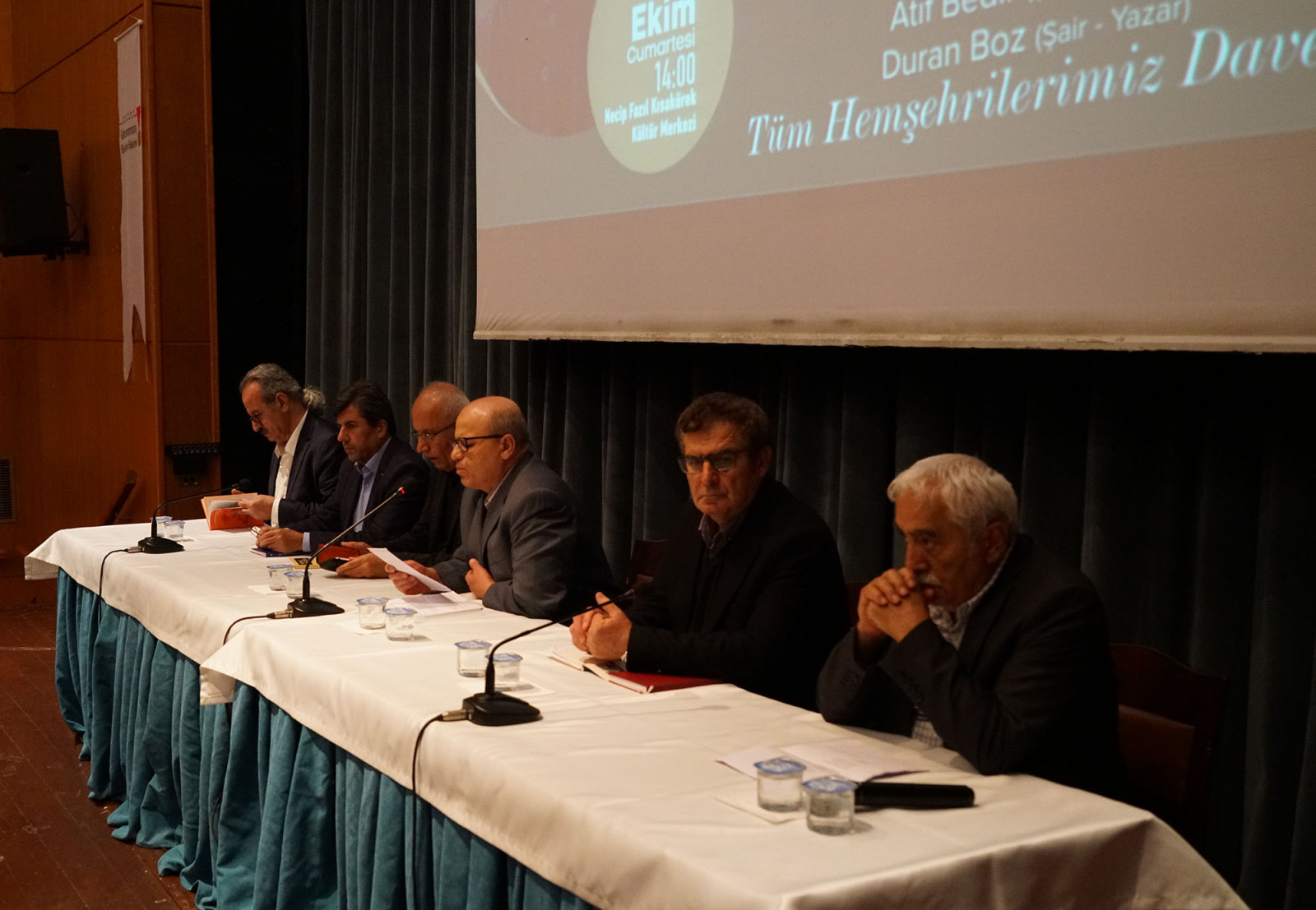 Necip Fazıl Kısakürek Kültür Merkezi’nde gerçekleştirilen panele yazarlar Arif Ay, İbrahim Demirci, Ali Karaçalı, Necip Evlice, Atıf Bedir ve Duran Boz konuşmacı olarak katıldılar.