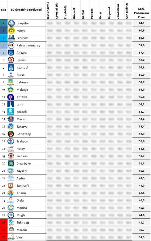 Kahramanmaraş Büyükşehir Belediyesi tarafından vatandaşlara sunulan toplu taşıma hizmeti, Türkiye geneli bir çalışma kapsamında özel bir şirket tarafından değerlendirildi. ‘Büyükşehirler Toplu Ulaşım Performans Ligi Araştırması’ adı altında, 30 büyükşehirde 10 bin 740 kişinin katılımıyla bir anket gerçekleştirildi.