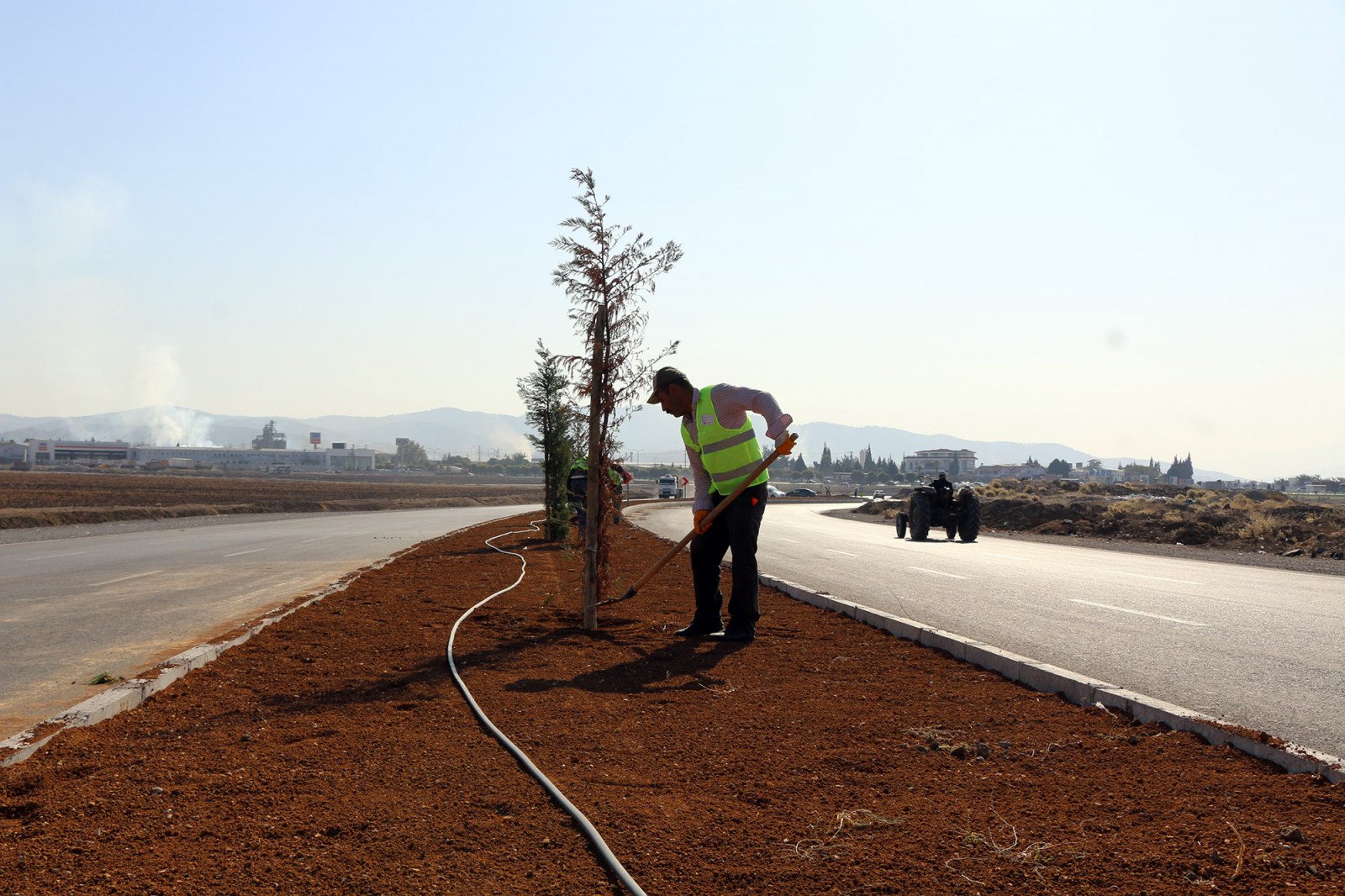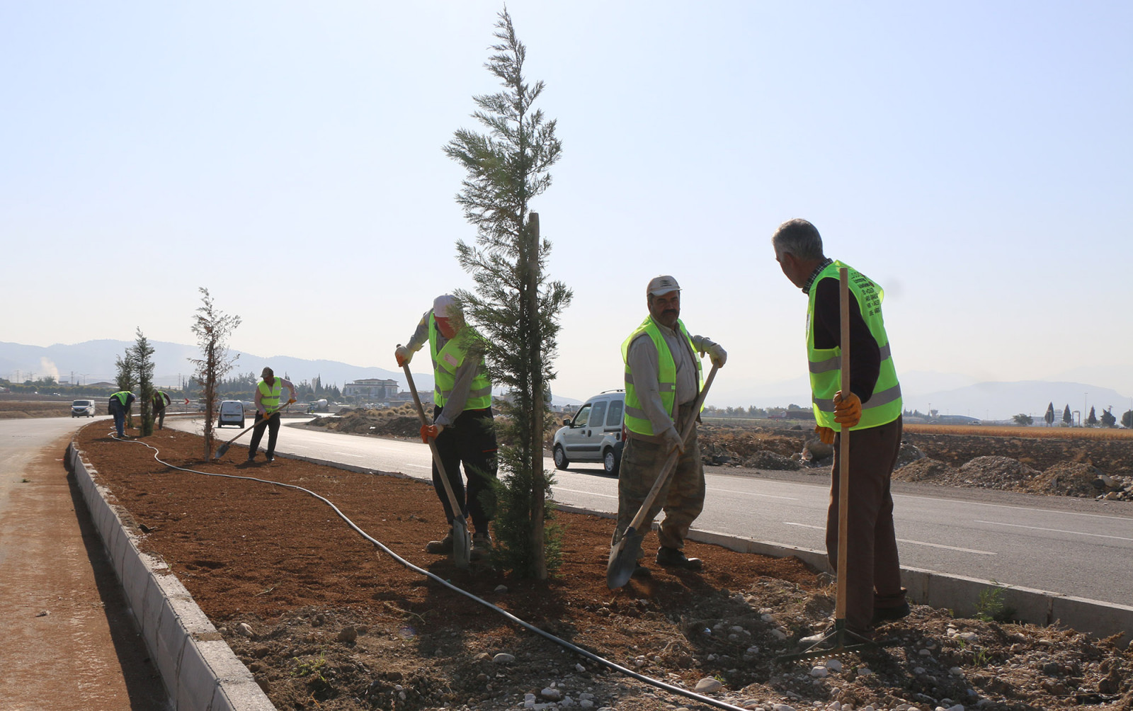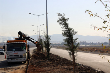 Büyükşehir Belediyesi yol yapım çalışmalarının tamamlandığı arterlerde ağaç dikim ve peyzaj çalışmalarını aralıksız sürdürüyor.