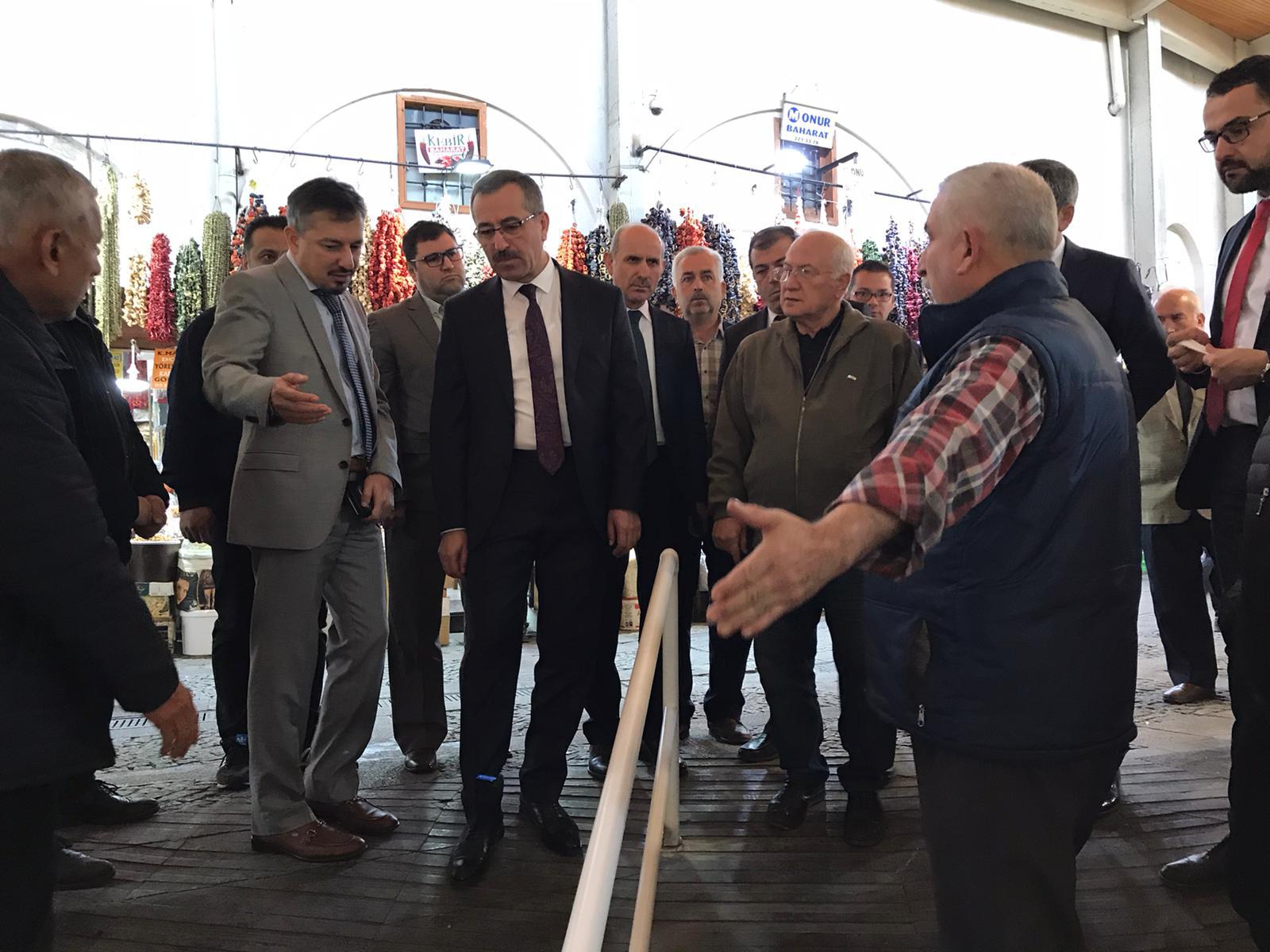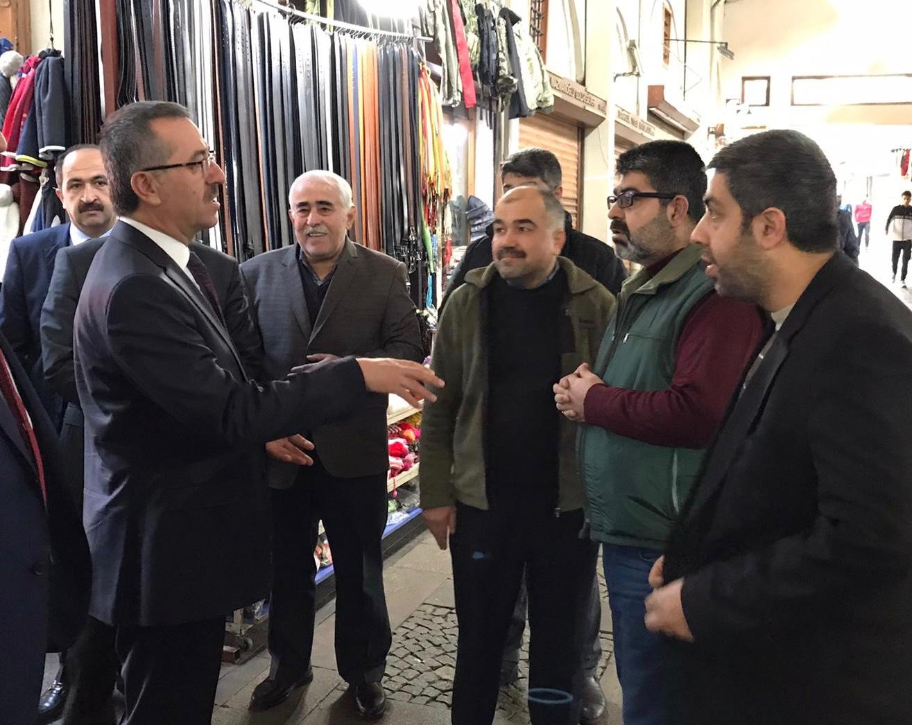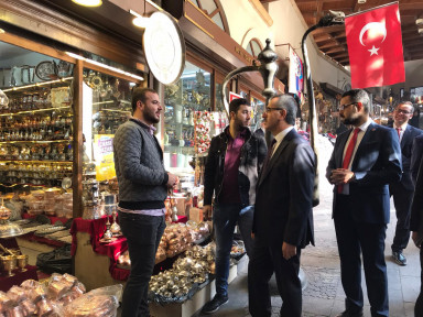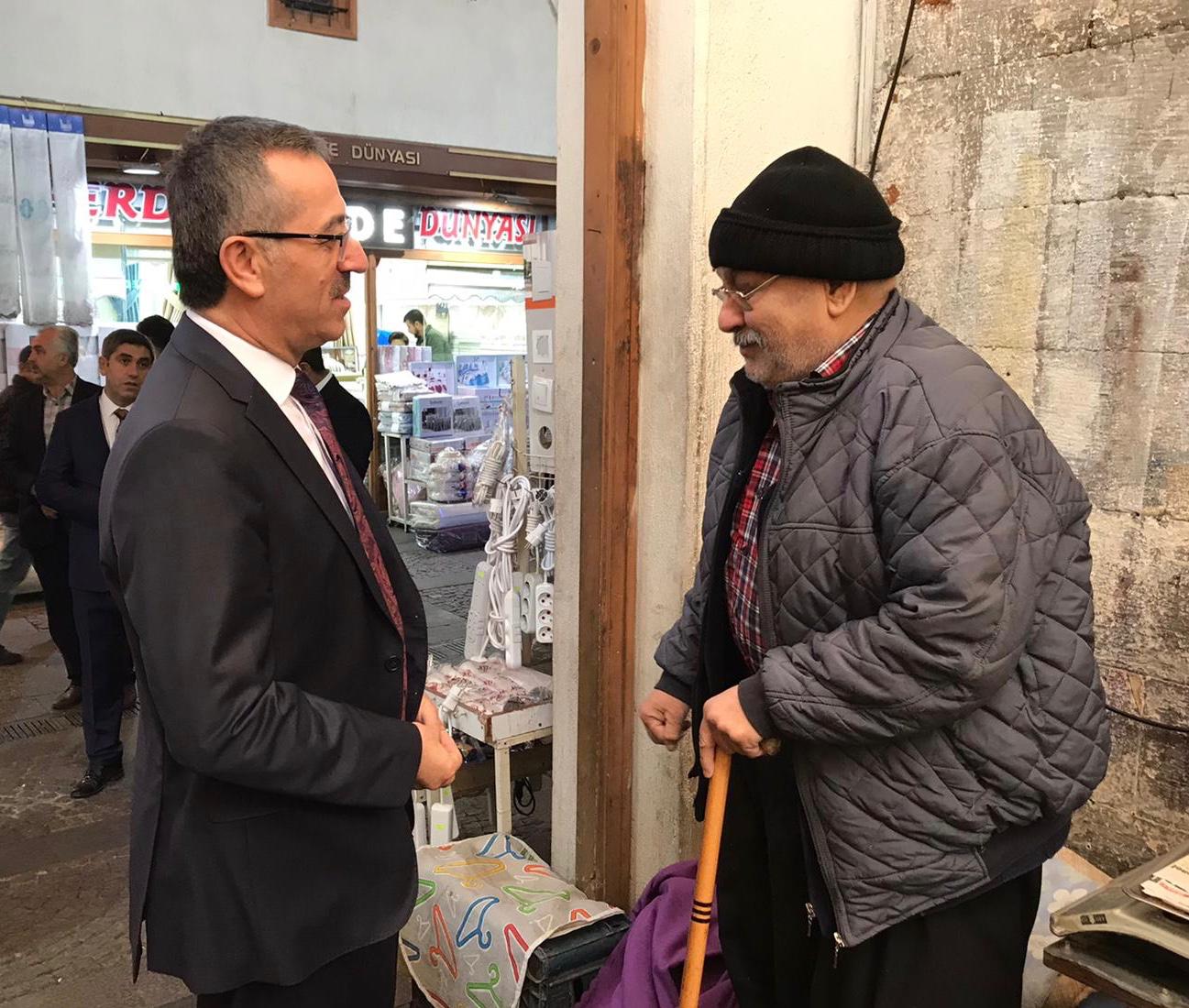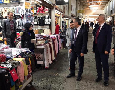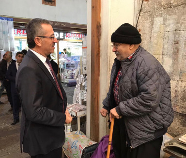 Kahramanmaraş Büyükşehir Belediye Başkanı Hayrettin Güngör,Tarihi Maraş Çarşısı’nı ziyaret etti.Beraberinde Büyükşehir Belediyesi Genel Sekreteri Dr. Rüstem Keleş, KASKİ Genel Müdürü Ahmet Kavak, Genel Sekreter Yardımcısı Nihat Yıldız, İmar ve Şehircilik Dairesi Başkanı Fatih Bülbül ile Tarihi Maraş Çarşısını gezen Başkan Güngör, esnafa hayırlı işler diledi, vatandaşlarla da sohbet etti.