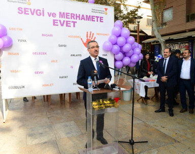 Programda konuşan Büyükşehir Belediye Başkanı Hayrettin Güngör, “Günümüzde şiddet, sosyolojik olarak tüm toplumların karşı karşıya olduğu ve baş etmek zorunda kaldıkları en önemli sorun alanlarından biridir. Bir insanı öldüren bütün insanlığı öldürmüş gibidir evrensel kuralını koyan inancımız, özellikle kadın söz konusu olduğunda daha da hassas yaklaşımlar ortaya koymuştur. Cumhurbaşkanımızın dediği gibi kadın yoksa toplumun yarısı da yoktur. Şiddet, zulüm, baskı ve ayrımcılığın her türlüsünü kınadığımızı belirtiyor; bu konularda toplumca bir mücadele içerisinde bulunmamızın gerekliliğine inanıyorum” ifadelerini kullandı.