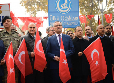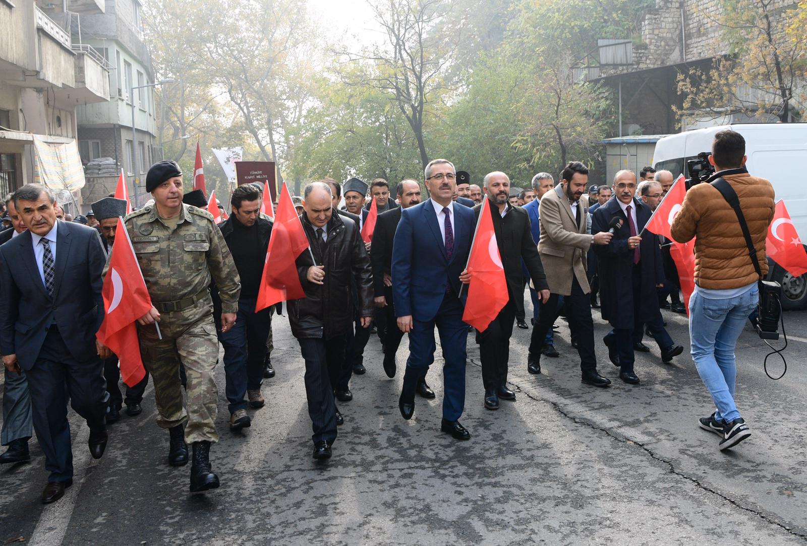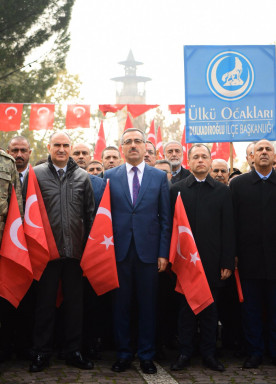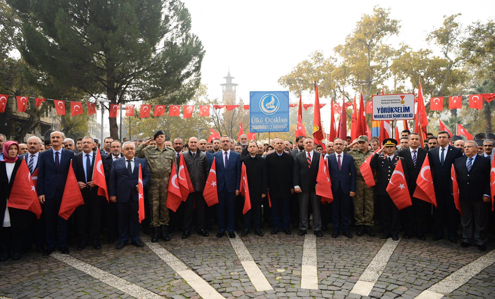 Hayrettin Güngör, “Bayrak olayı ile başlayan istiklal mücadelemiz Sütçü İmam’ın hedefini bulan kurşunuyla devam etti. O gün karşılarında Sütçü İmamı, Aslanbey’i, Rıdvan Hoca’yı, Abdal Halil Ağa’yı, Ali Sezai Efendi’yi, Senem Ayşe’yi buldular, bu gün ise Ömer Halisdemir’leri buluyorlar. Tıpkı 100 yıl önce Ulu Cami’de toplanıp Kale’ye hücum eden dedelerimiz gibi ya istiklal, ya ölüm diyoruz” ifadelerini kullandı. Başkan Güngör’ün konuşmasının ardından Avukat Mehmet Ali Kısakürek’in ‘Alem-i İslam’a Hitap’ beyannamesi okundu.
