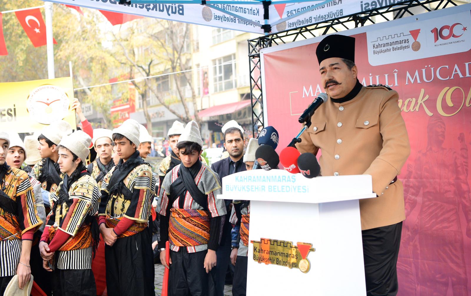 Ardından etkinlikler Atatürk Meydanı’nda devam etti. Programın açılış konuşmasını yapan Büyükşehir Belediye Başkanı Hayrettin Güngör, Kahramanmaraş’ın milli mücadelede öncü ve örnek bir şehir olduğunu belirtti. Başkan Güngör, “Yüz yıl önce yaşanan Bayrak Olayı’nı çok iyi anlamamız ve anlatmamız lazım.Ecdadımız, burada yürütülen mücadelenin ne anlama geldiğini çok iyi biliyordu. Bunun için adeta varını, yoğunu ortaya koyarak Maraş’ı düşmana teslim etmedi” diye konuştu.