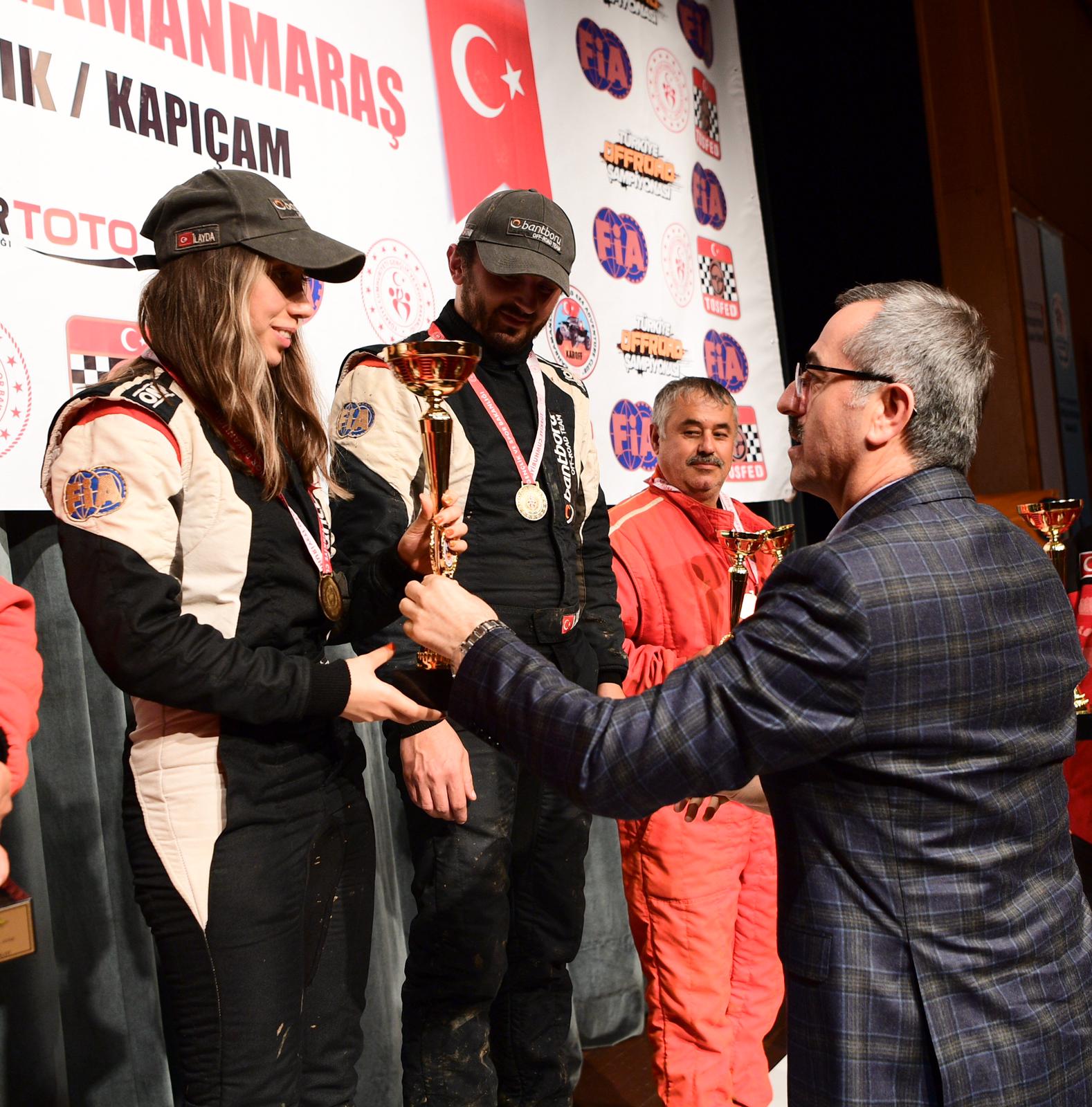 Kahramanmaraş’ın düşman işgalinden kurtuluşunun 100 yılı kutlama etkinlikleri kapsamında gerçekleştirilen offroad şampiyonalarında dereceye girenlere ödülleri verildi. Necip Fazıl Kısakürek Kültür Merkezi’nde düzenlenen ödül töreninde hem Türkiye Offorad Şampiyonası 6. Ayak Yarışı hem de Akdeniz Offroad Şampiyonasında derece yapan sporcular ödüllerini aldılar.