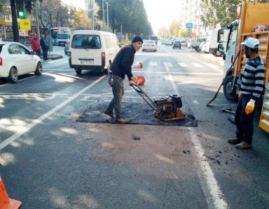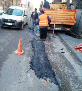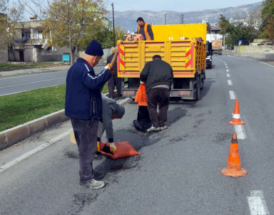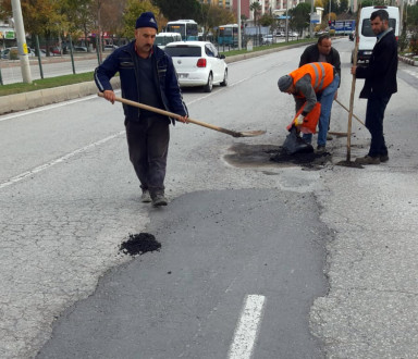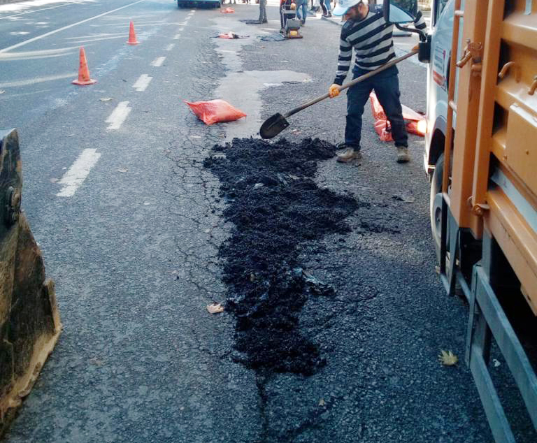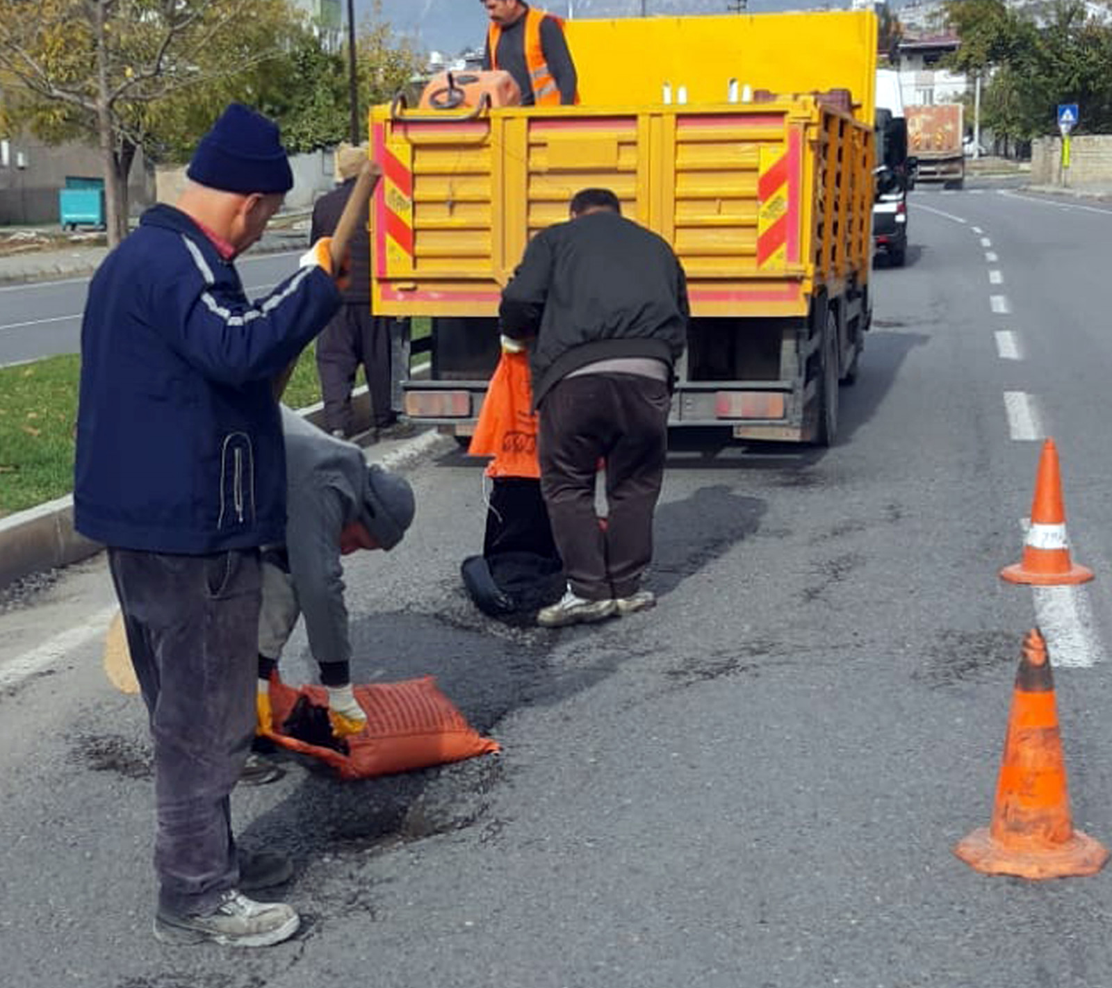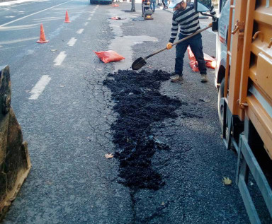 Çeşitli aşınma veya bozulmalardan dolayı yollarda oluşan çukurlar özellikle kış aylarında kullanılan soğuk asfalt ile yama yapılarak trafikte oluşması muhtemel olumsuzlukların önüne geçiliyor.