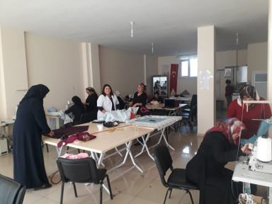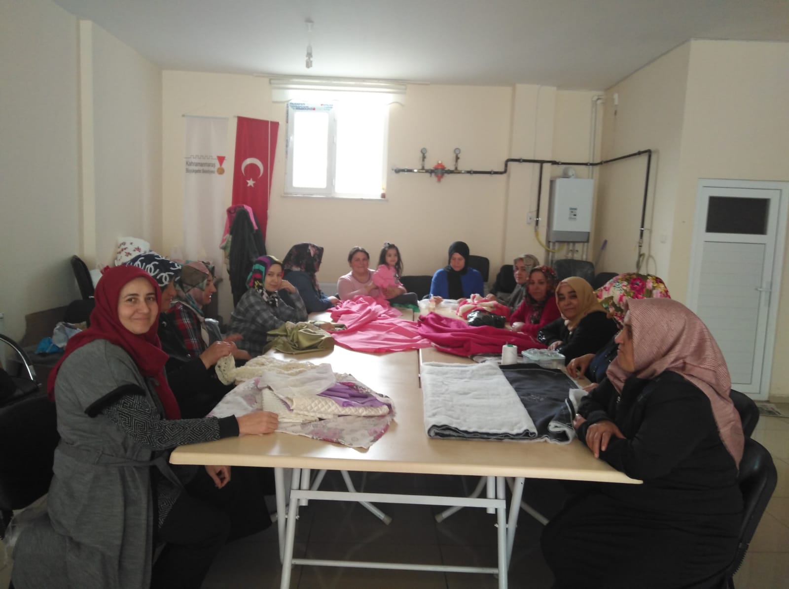 Büyükşehir Belediyesi özellikle ev hanımlarına yönelik Türkoğlu İlçesinde Halk Eğitim İlçe Müdürlüğü işbirliği ile gerçekleştirdiği KAMEK kursları devam ediyor.