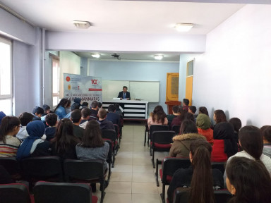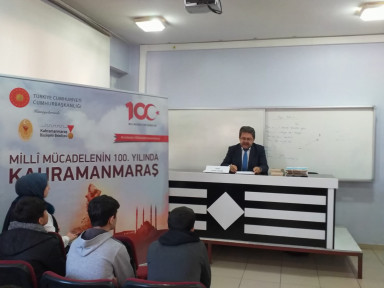 Diğer konuşmacı Serdar Yakar ise Sergentepe Ortaokulu ve Şehit İdari Ateşe Galip Özmen M.T.A.L.’de öğrencilere kurtuluş mücadelesinden kesitler anlattı.