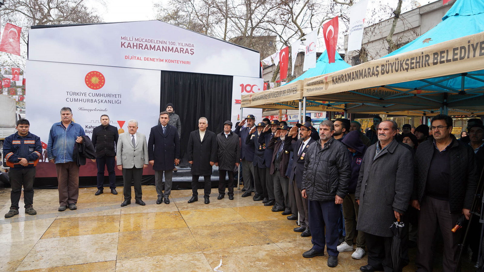 Kahramanmaraş Büyükşehir Belediyesi tarafından içinde Maraş’ın 1920’de gösterdiği şanlı direnişe ait belge, resim, fotoğraf sergisinin, videolu anlatımın ve seslendirmelerin olduğu, izleyenlerin bu konuyu merak edip araştırmalarını sağlayacak şekilde tanzim edilmiş Dijital Deneyim Konteyneri, Demokrasi Meydanı’nda halkın hizmetine açıldı. Konteynerin açılış töreninde Büyükşehir Belediyesi Mehter Takımı’nın icra ettiği birbirinden güzel kahramanlık marşları, ilgiyle dinlendi.