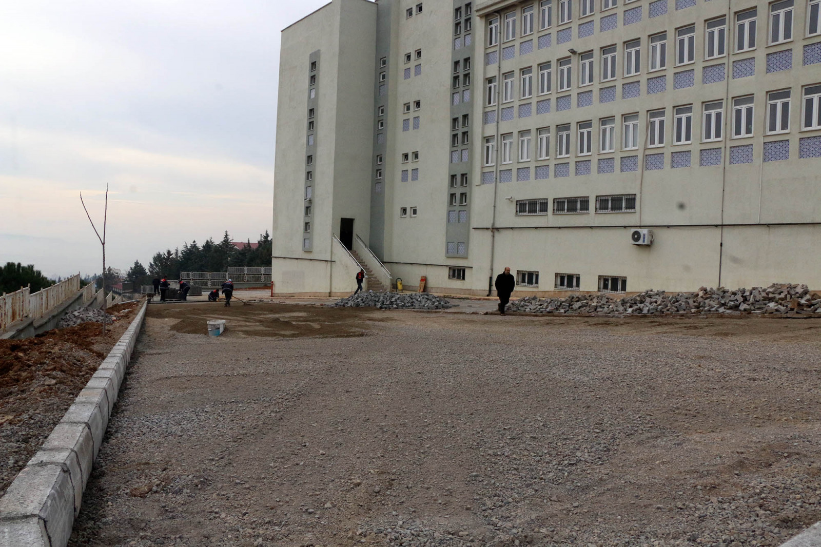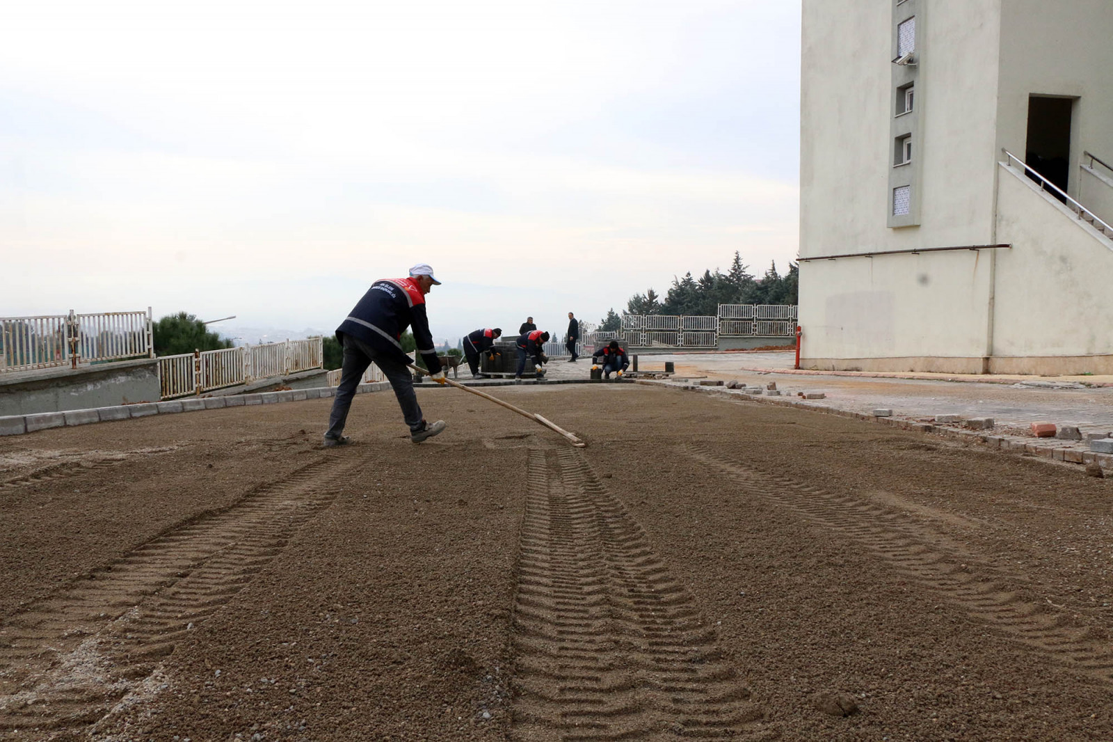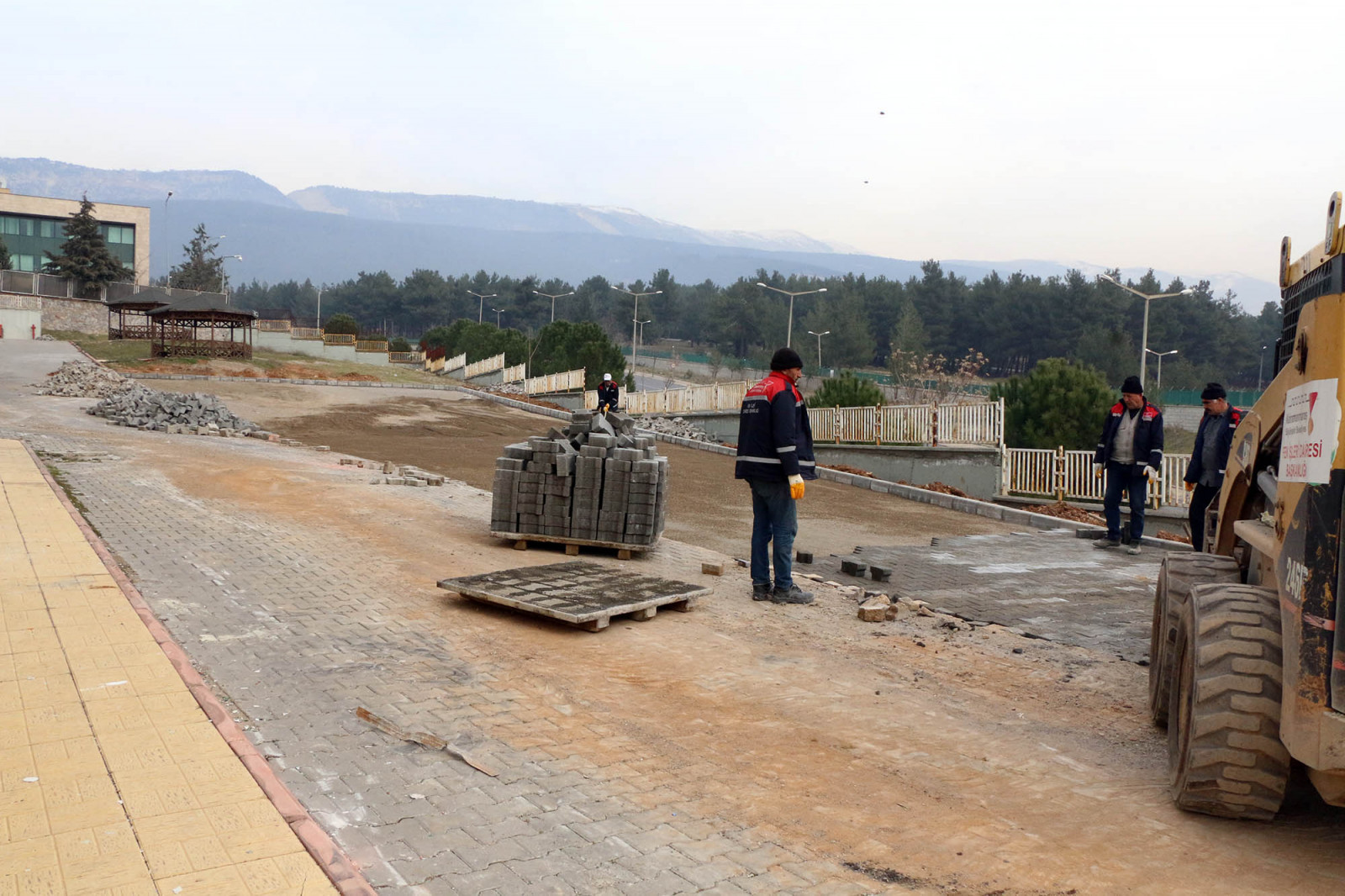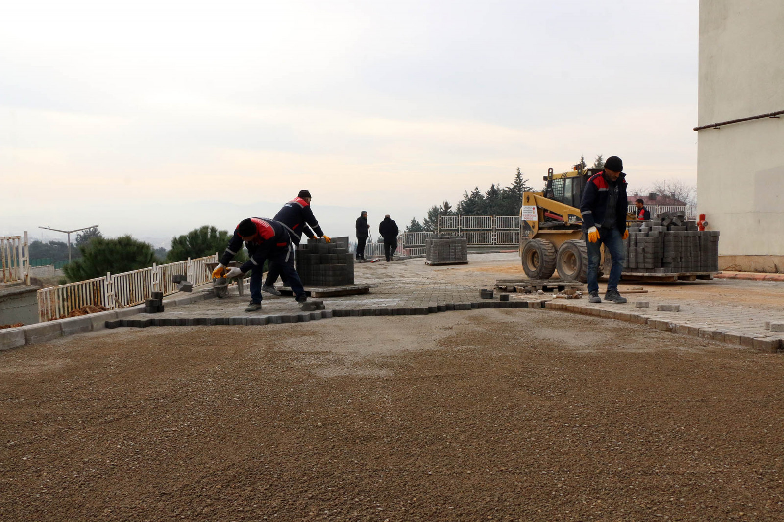 Büyükşehir Belediyesi ekipleri kendi tesislerinde ürettikleri bordür ve parke döşeme çalışmalarının yanı sıra okul bahçesinde bozulan alanlarda da tamirat yapacak.