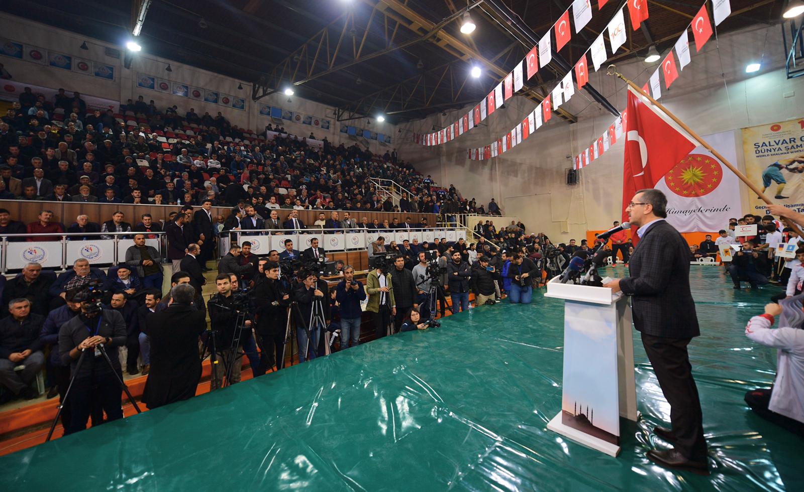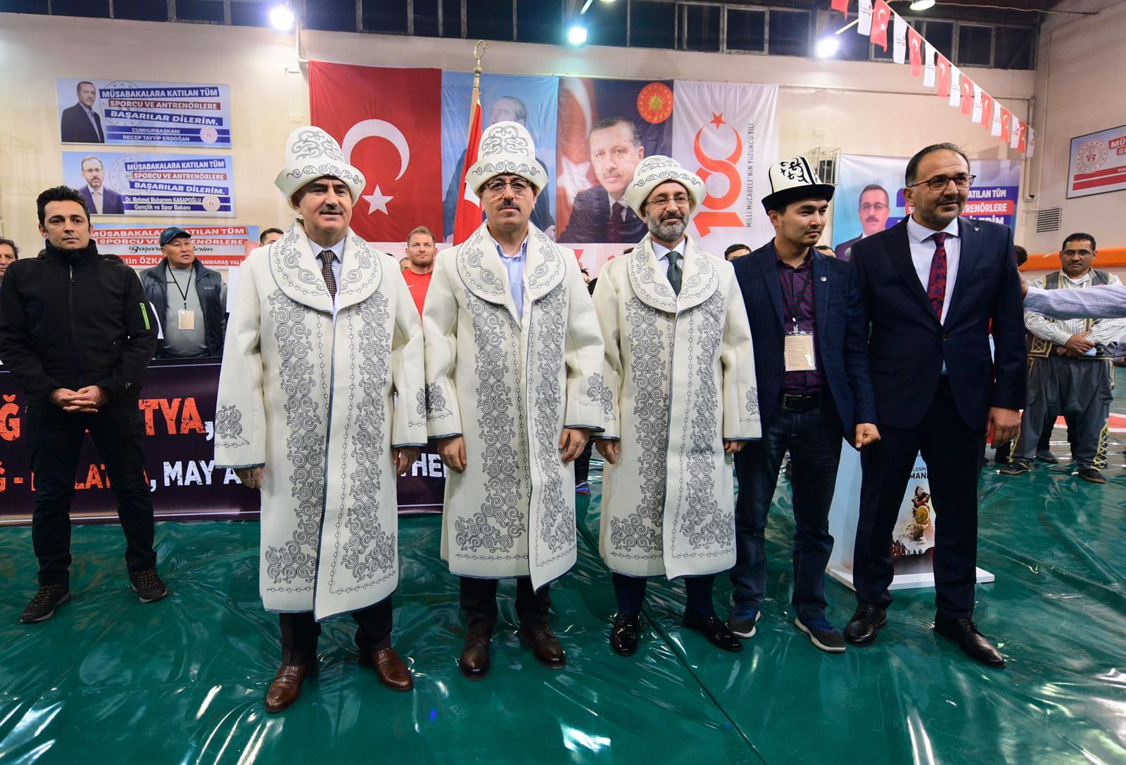 Açılış konuşmalarının ardından Vali Özkan, Federasyon Başkanı Kazancı ve Büyükşehir Belediye Başkanı Güngör’e hilkat giydirildi.