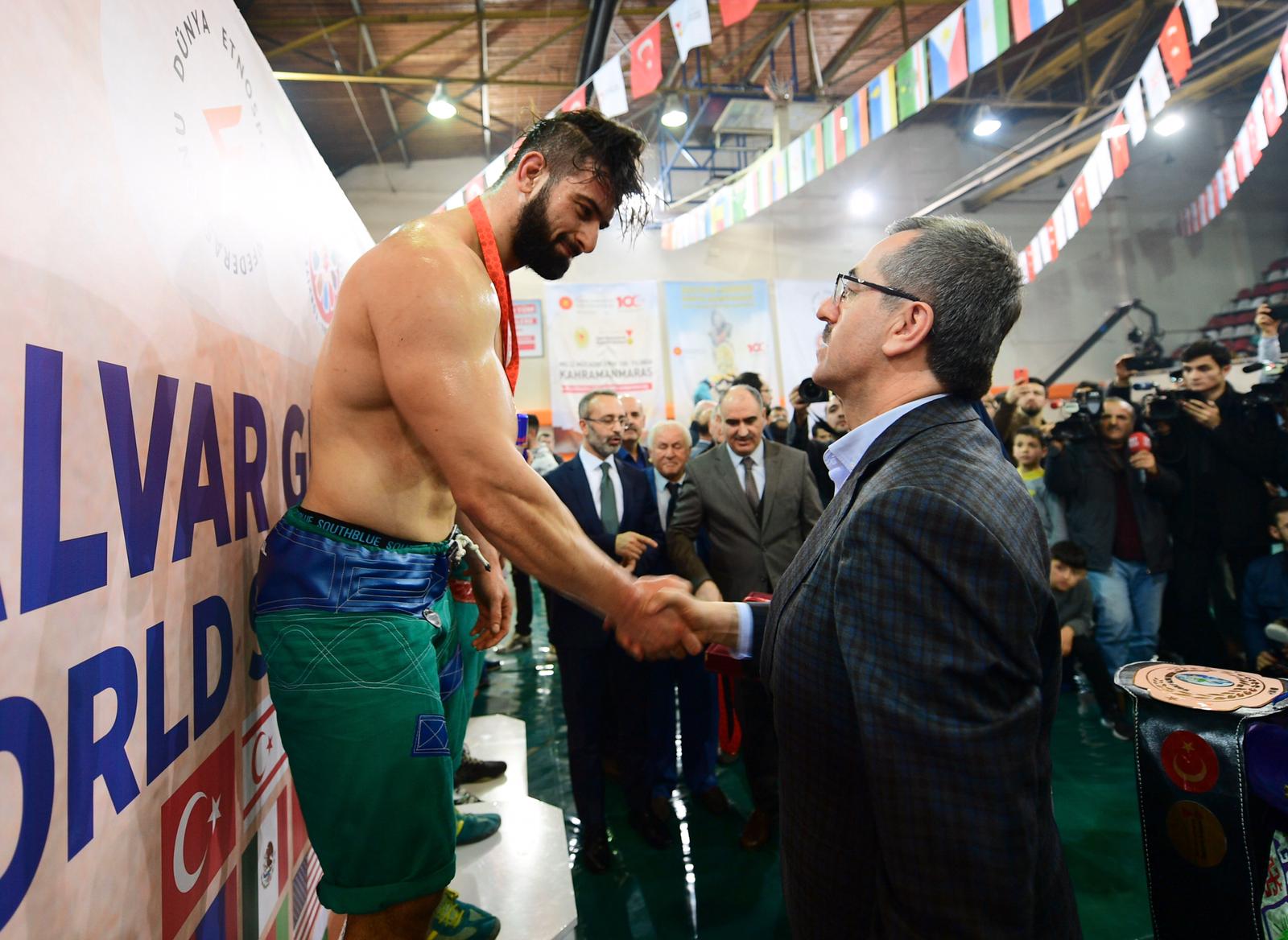 Kahramanmaraş Valisi Vahdettin Özkan, AK Parti Milletvekilleri Ahmet Özdemir, İmran Kılıç, Cihat Sezal, İl Başkanı Ömer Oruç Bilal Debgici, Türkiye Geleneksel Spor Dalları Federasyonu Başkanı Dr. Hakan Kazancı ile belediye başkanları ve binlerce güreşseverin izlediği Şalvar Güreşi Dünya Şampiyonası 8 sıklette gerçekleştirildi. Şampiyonada kilolarında dereceye girenler şu isimler oldu: