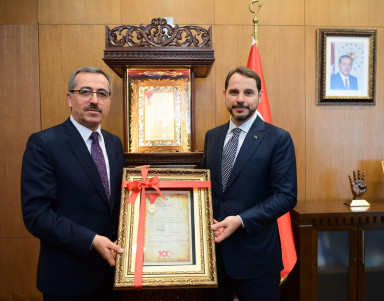 Ziyaretin anısına Başkan Güngör, Bakan Albayrak’a İstiklal Madalyası Beratı takdim ederek ziyaretten dolayı teşekkür etti.