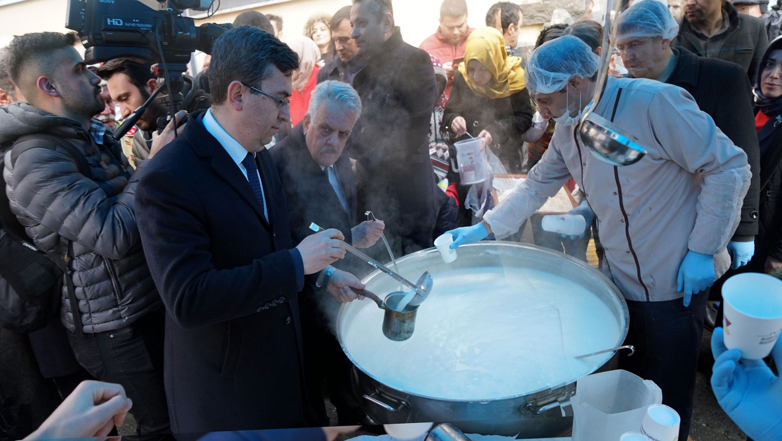 Başkanvekili Arif Şen, Dulkadiroğlu Kaymakamı Kadir Okatan, Onikişubat Kaymakamı Serkan Keçeli, Sütçü İmam’ın Torunu Yaşar Türkkorur, izleyicilere süt ikramında bulundular.
