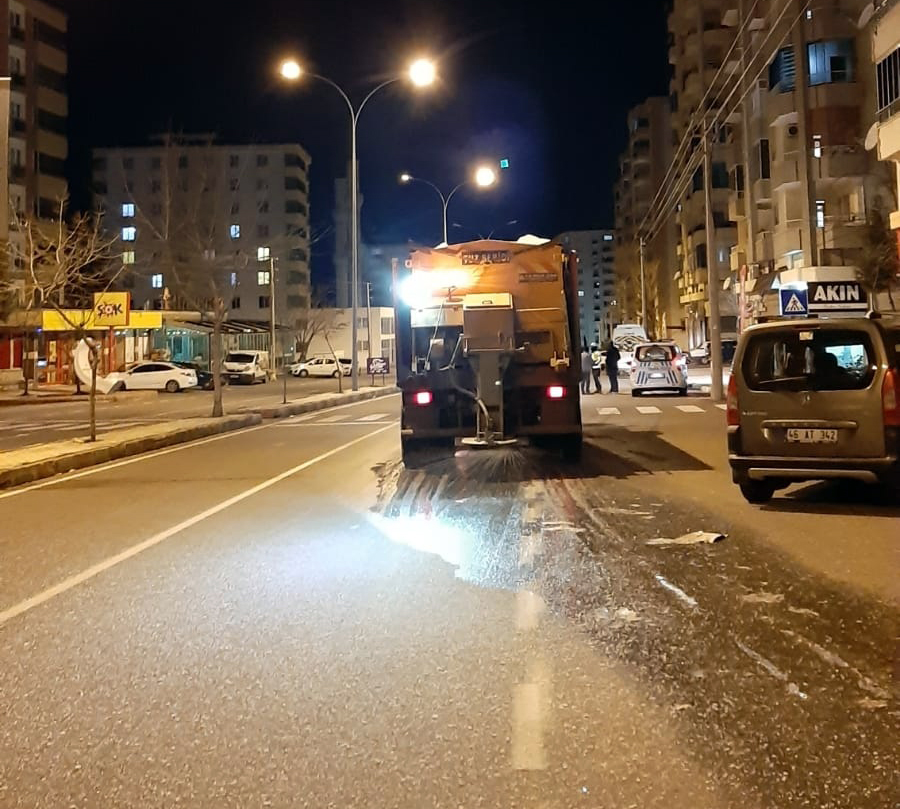 Büyükşehir Belediyesi çetin kış şartlarının yaşandığı şu günlerde kar yağışı olan bölgelerde kar temizleme çalışmalarının yanı sıra don olayına karşı da yollarda tuzlama çalışmalarını sürdürüyor.