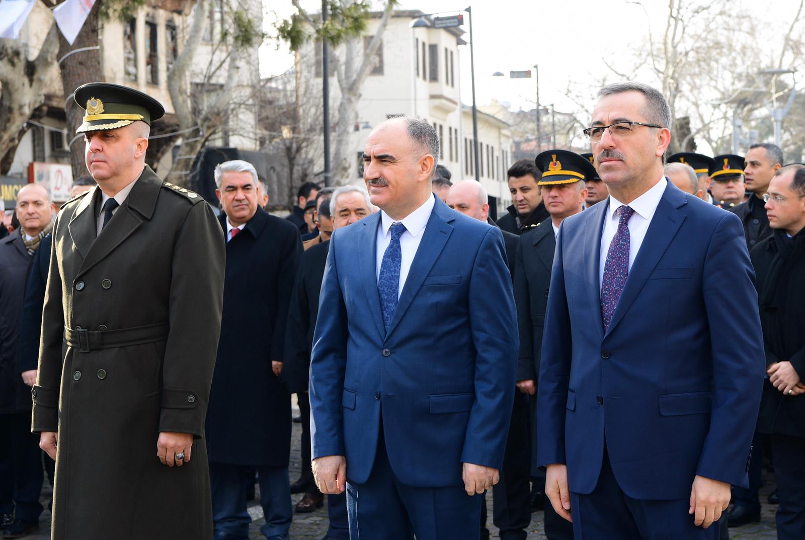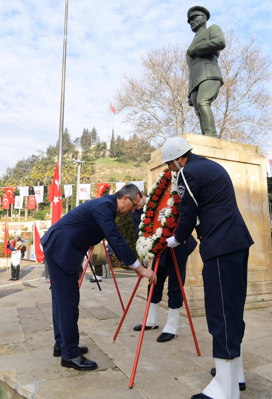 Atatürk Meydanı’nda gerçekleştirilen çelenk sunma töreninde Kahramanmaraş Valisi Vahdettin Özkan, Garnizon Komutanı Albay Emin Mehmet Terzioğlu ve Büyükşehir Belediye Başkanı Hayrettin Güngör tarafından Atatürk Anıtına çelenk sunumu gerçekleştirildi.