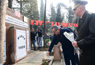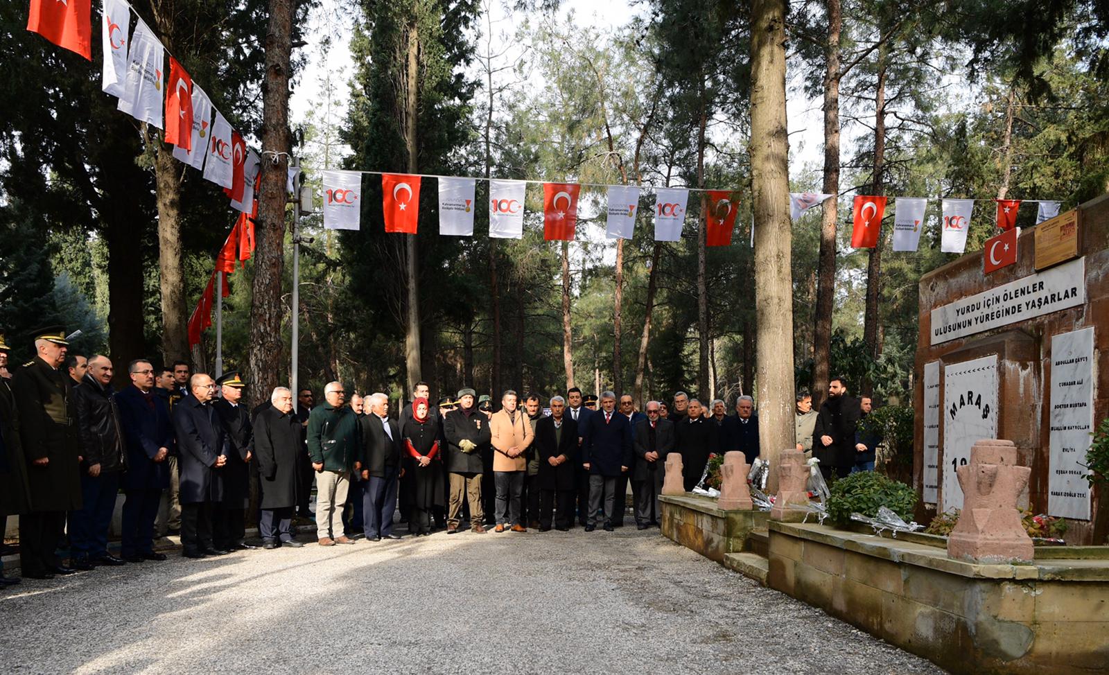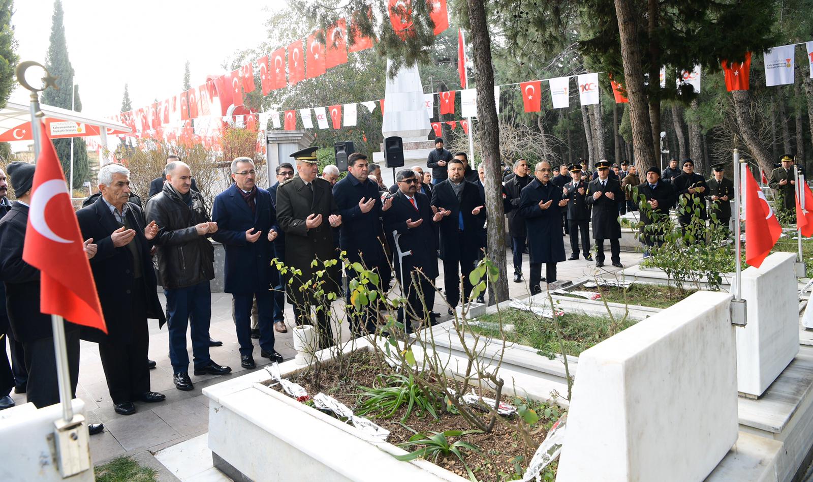 Kahramanmaraş’ın düşman işgalinden kurtuluşunun 100. Yılı etkinlikleri kapsamında çelenk sunma törenlerinin ardından Sütçü İmam, mezarı başında anılarak Şeyhadil Mezarlığındaki eski ve yeni şehitlik ziyaret edildi.