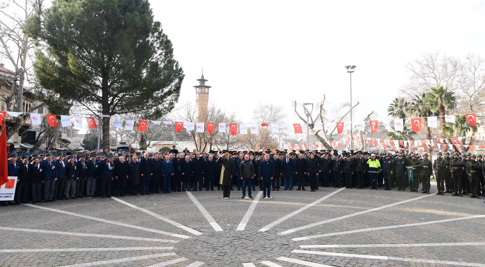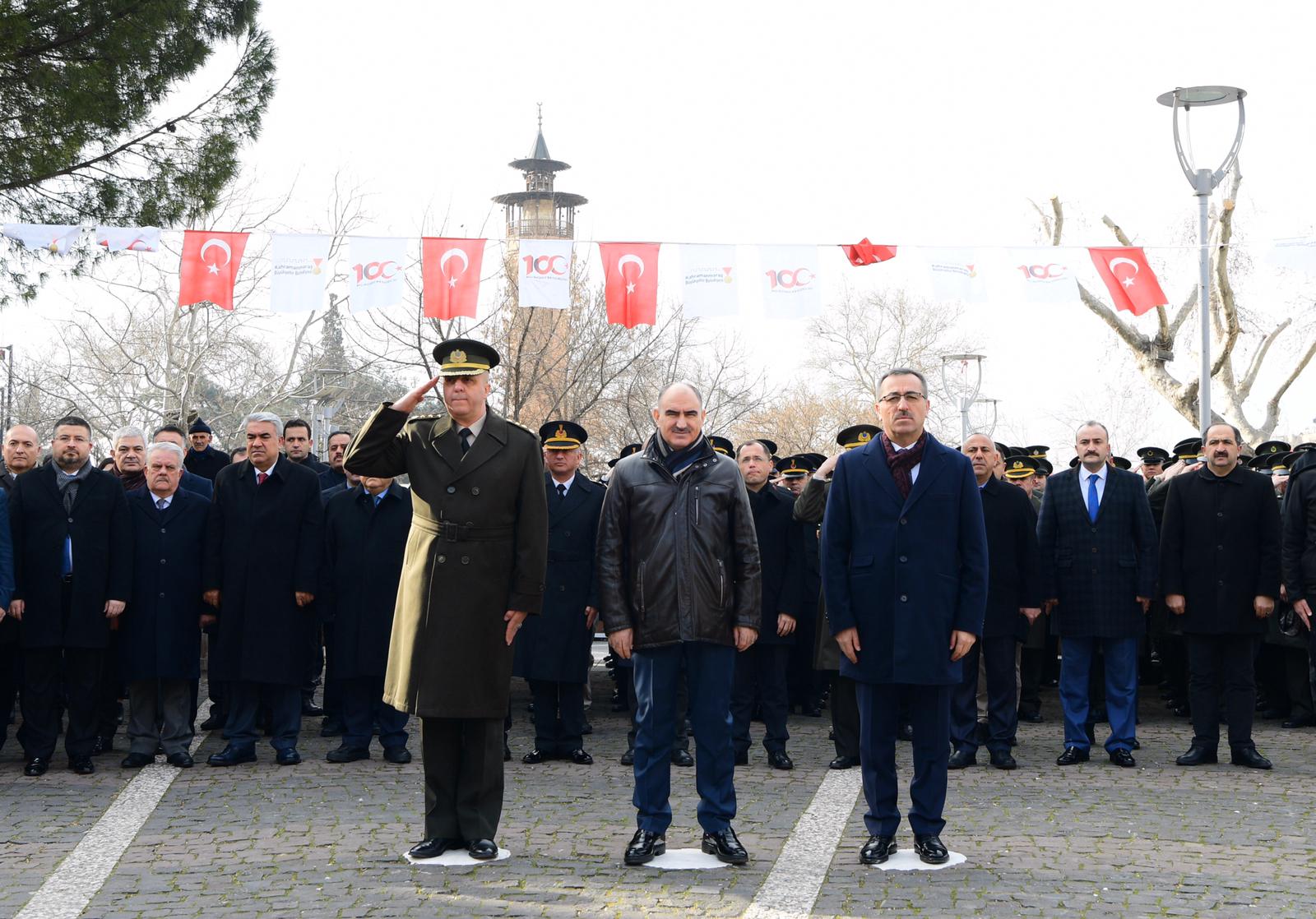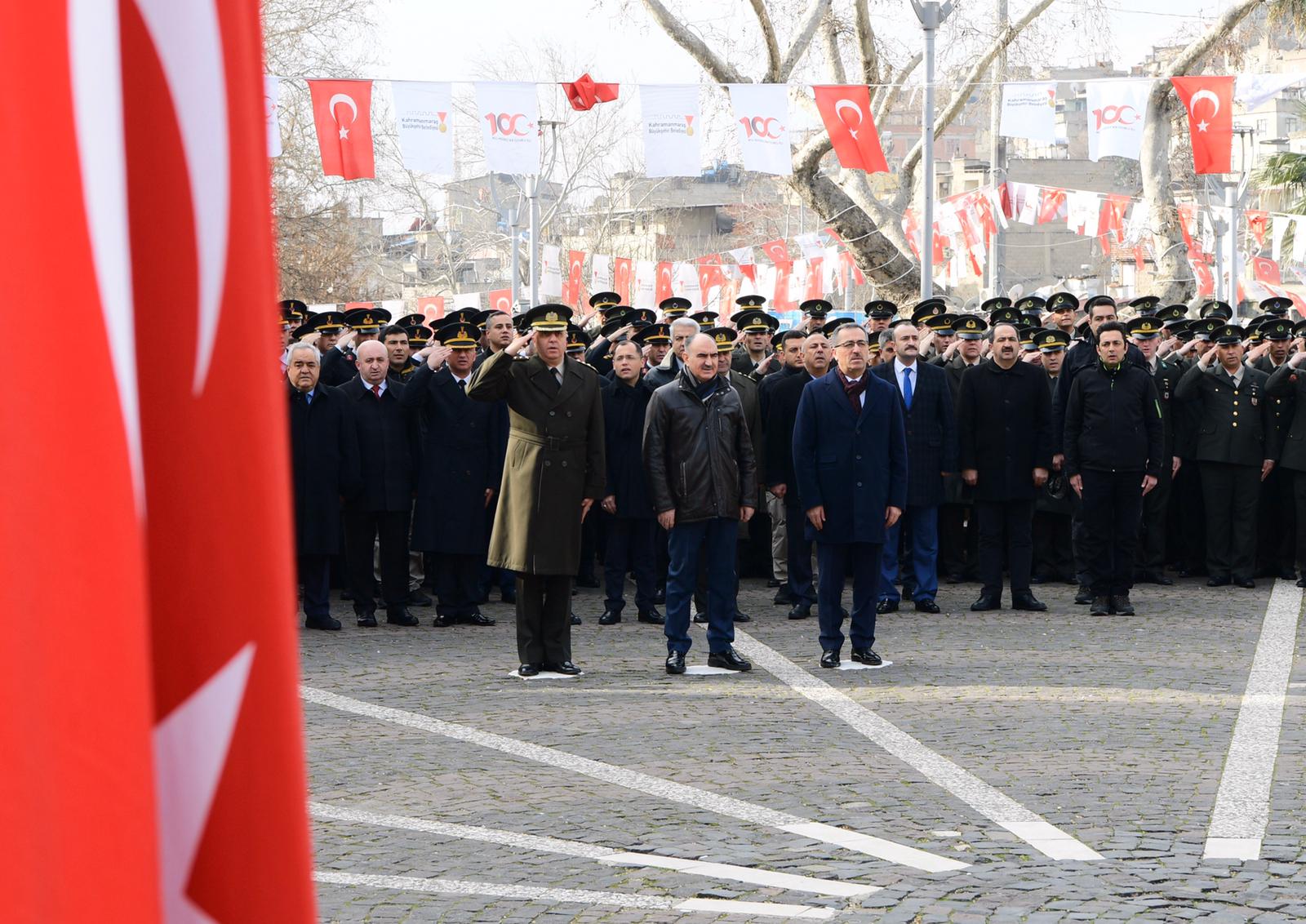 Kahramanmaraş’ın düşman işgalinden kurtuluşunun 100. Yılı kutlama etkinlikleri Atatürk Meydanı’nda çelenklerin sunumu ile devam etti.