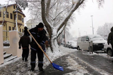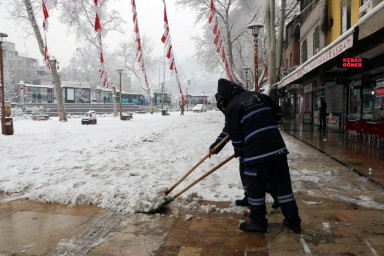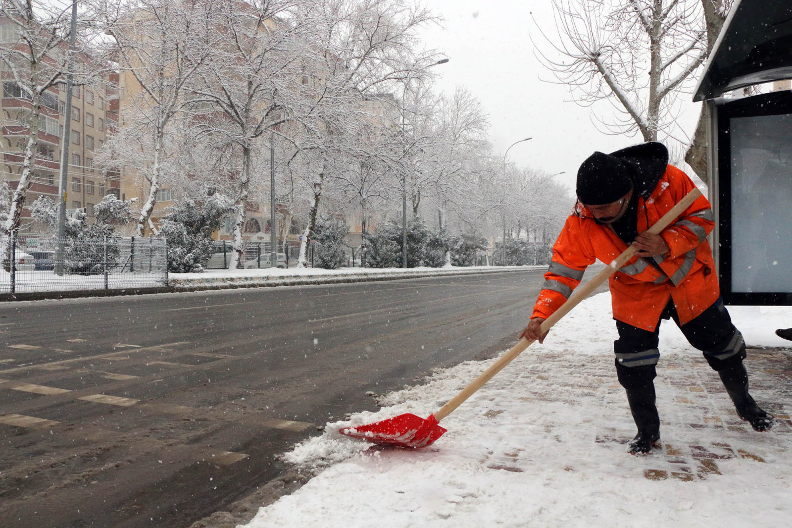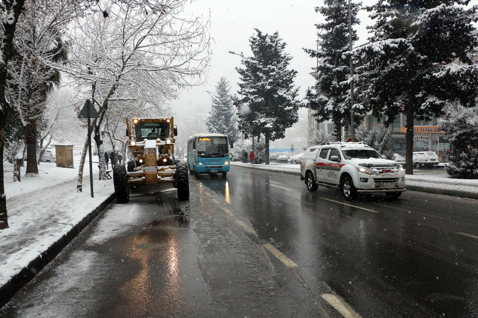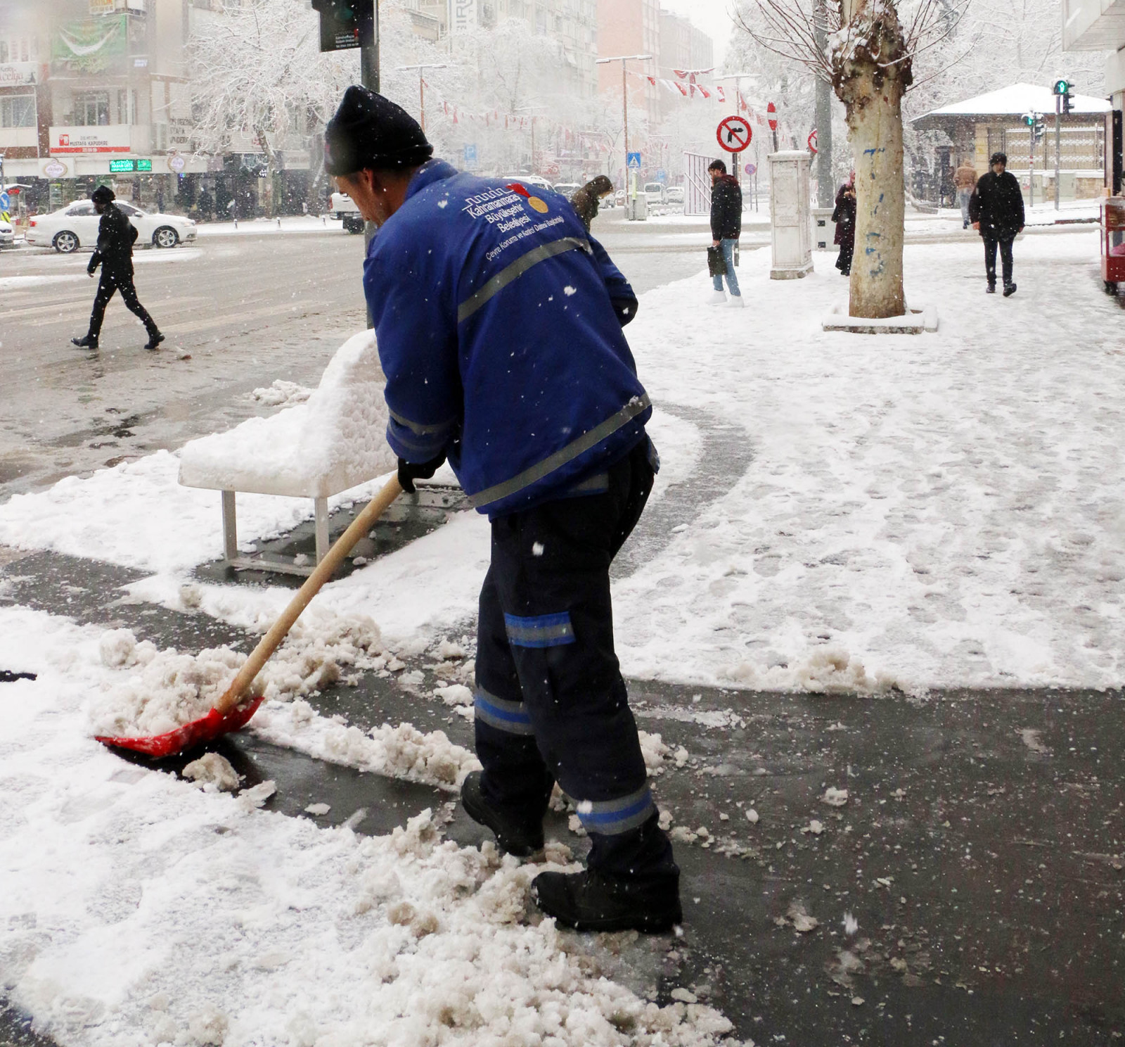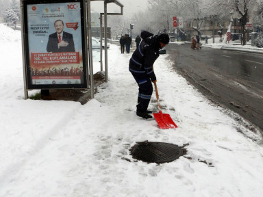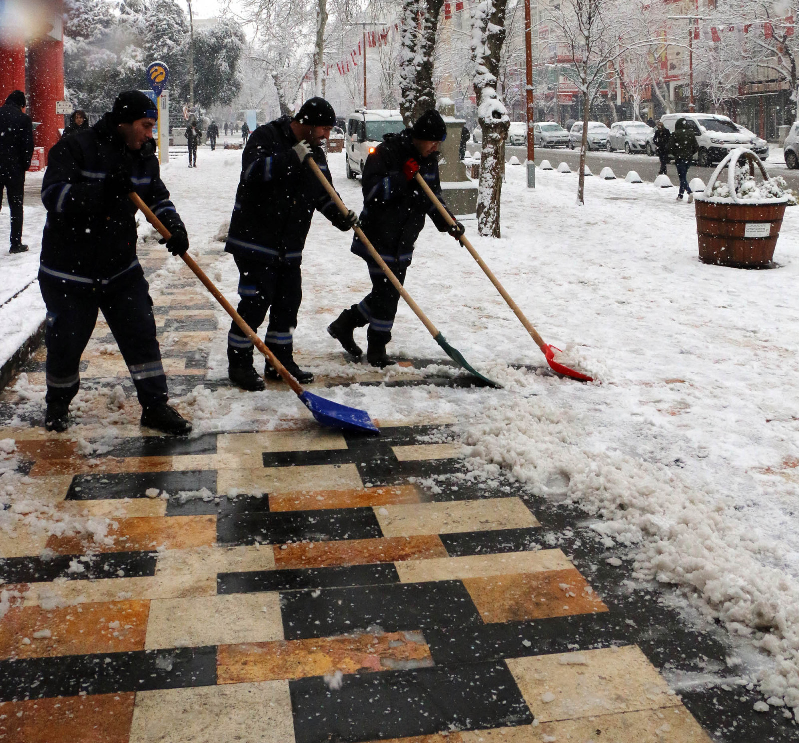 Büyükşehir Belediyesi ekipleri şehir merkezinde devam eden kar yağışına karşılık bir taraftan yollarda kar temizleme ve tuzlama çalışmalarını yürütürken diğer taraftan da vatandaşların sorun yaşamaması için kaldırım temizliğine de devam ediyor.