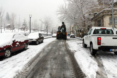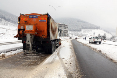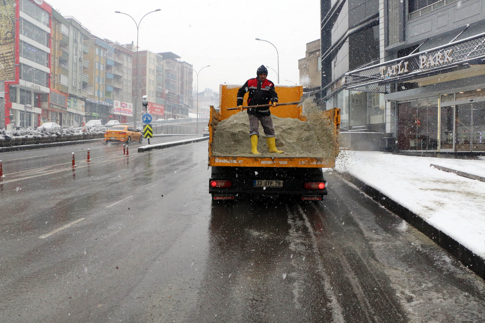 Ekipler kar yağışının devam etmesine rağmen, don tehlikesine karşı da tuzlama çalışmalarına devam ediyor.