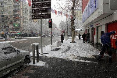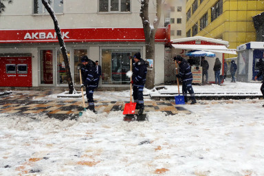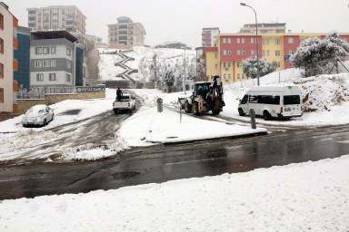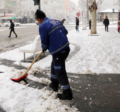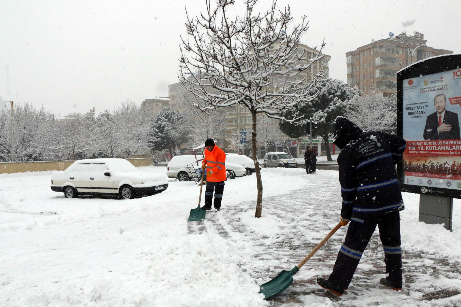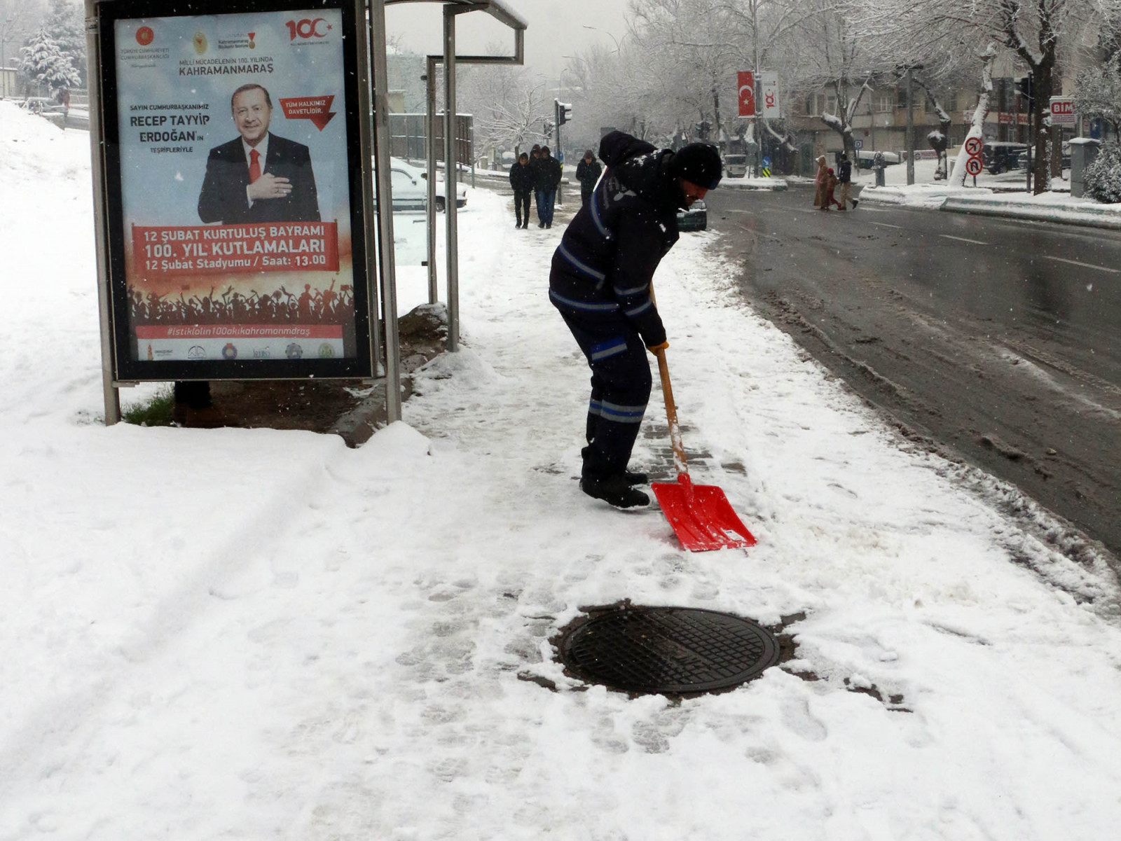 Kahramanmaraş Büyükşehir Belediyesi dün akşam saatlerinden itibaren yağmaya başlayan karın olumsuzluk meydana getirmemesi adına çalışmalara aralıksız olarak devam ediyor. Gece başlayan tuzlama ve kar temizleme çalışmalarına aralıksız devam eden Büyükşehir Belediyesi ekipleri gündüz de kaldırımlarda kar temizleme çalışmalarını sürdürüyor.